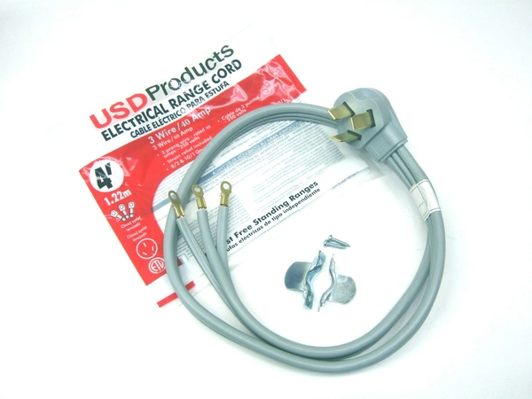 4 Foot Power Cord For Ranges#9679; 4 Foot . #9679; 3 Wire . #9679; 40 Amp