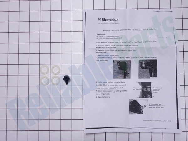 Ensure your refrigerator operates smoothly with this essential shim kit, designed to adjust the hinge alignment for optimal performance. Compatible with a range of brands, including Crosley, Electrolux, Frigidaire, Gibson, Kelvinator, Kenmore, Tappan, and Westinghouse, this shim kit provides a reliable solution for those troubleshooting alignment issues. Crafted by Electrolux, a trusted name in appliance parts, this product guarantees durability and ease of installation. It is specifically designed for various refrigerator models, making it a must-have for efficient maintenance. Invest in the longevity and functionality of your appliance with this high-quality hinge shim kit, engineered to keep your refrigerator in top condition.