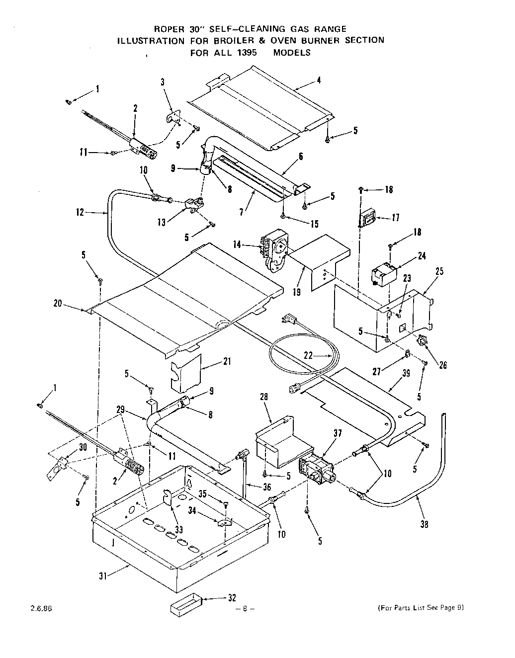 Broiler Burner (Inc`s. Keys 7, 8, 9, 15)