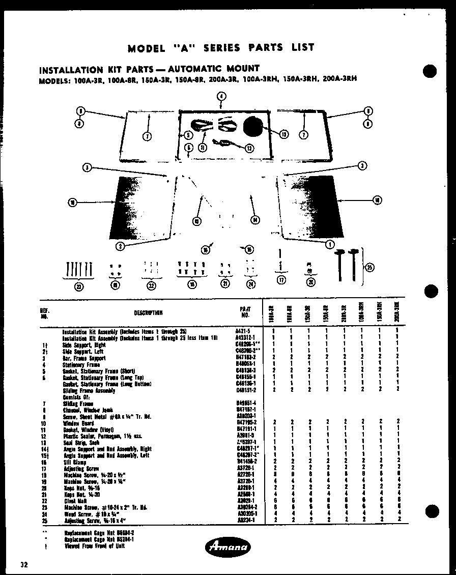 150A-3R 02 – INSTALLATION KIT PARTS – AUTOMATIC MOUNT