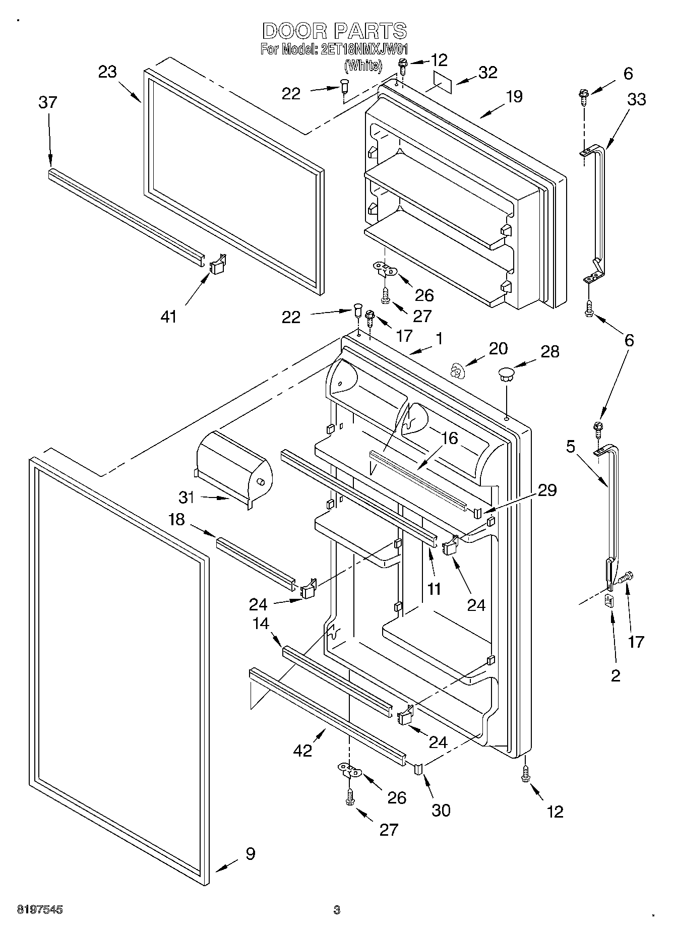 Refrigerator Door (Includes No.9 & No.22) (White)