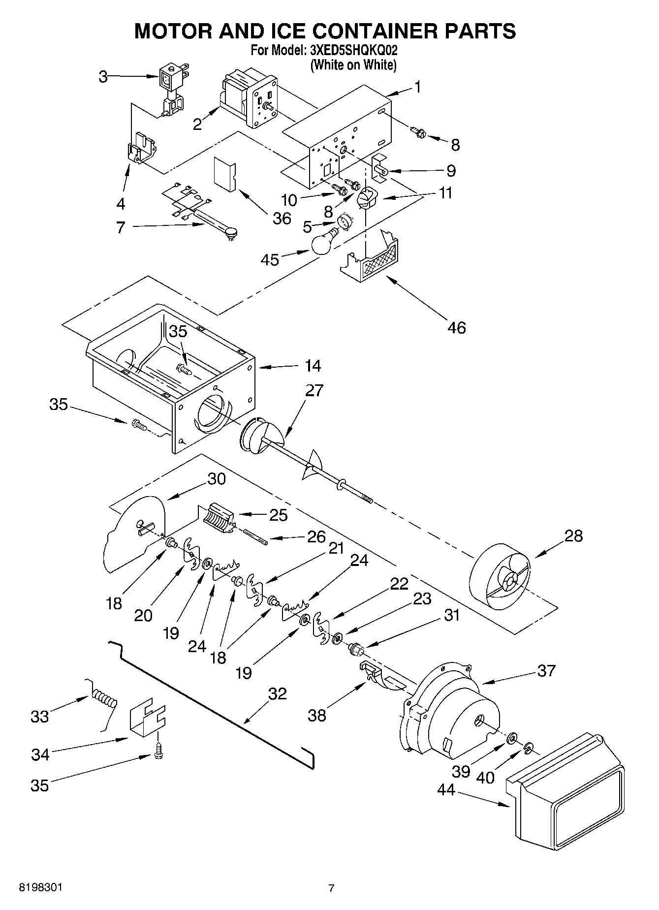 3XED5SHQKQ02 05 – MOTOR AND ICE CONTAINER PARTS