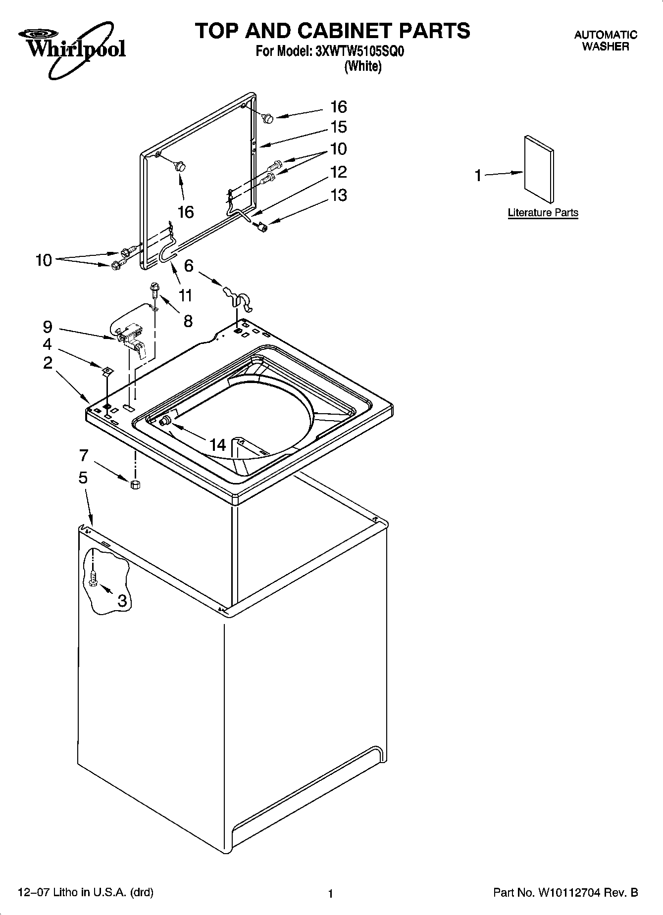 3XWTW5105SQ0 01 – TOP AND CABINET PARTS