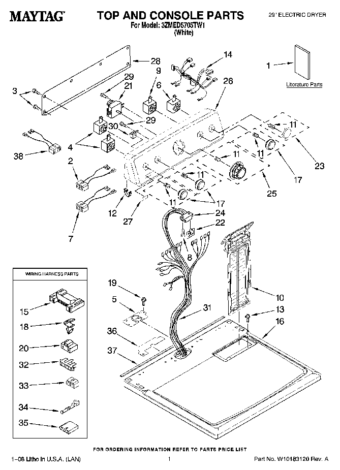 3ZMED5705TW1 01 – TOP AND CONSOLE PARTS