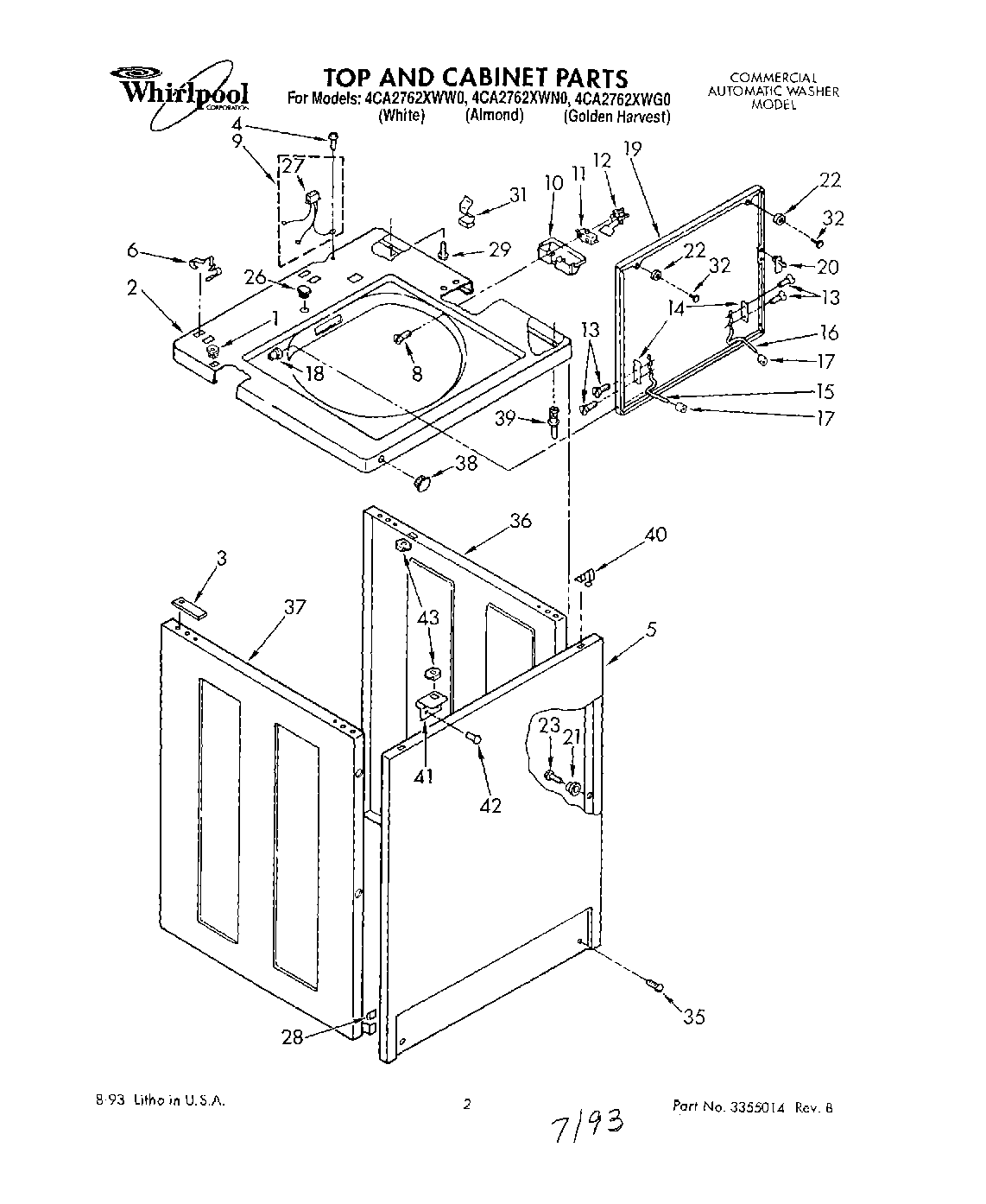 4CA2762XWN0 01 – TOP AND CABINET, LIT/OPTIONAL