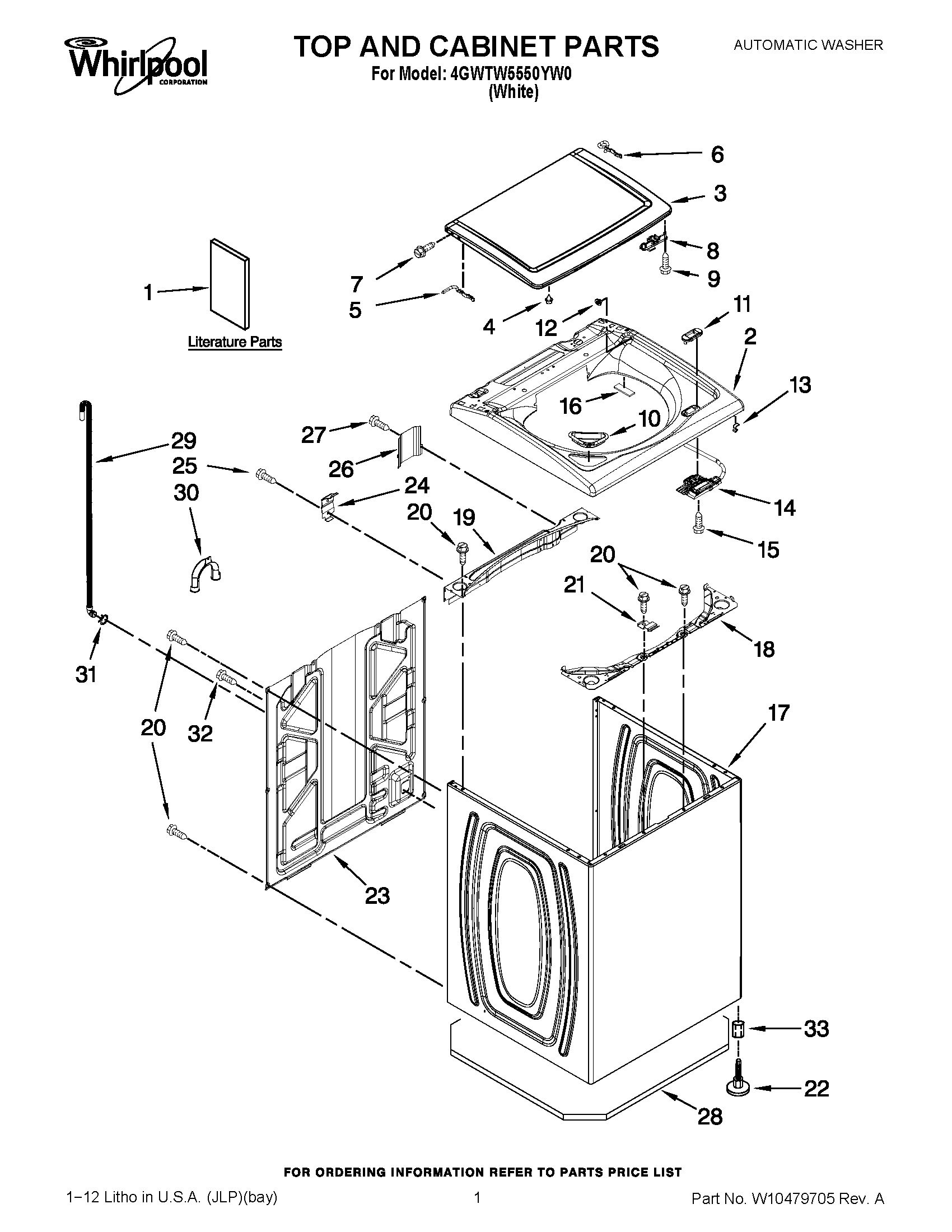 4GWTW5550YW0 01 – TOP AND CABINET PARTS