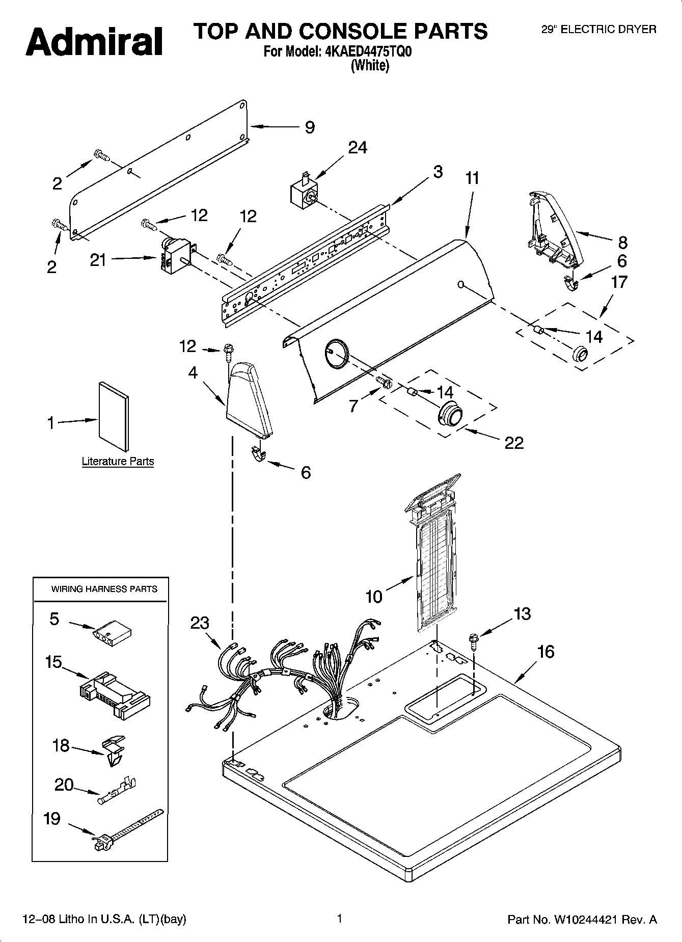 4KAED4475TQ0 01 – TOP AND CONSOLE PARTS