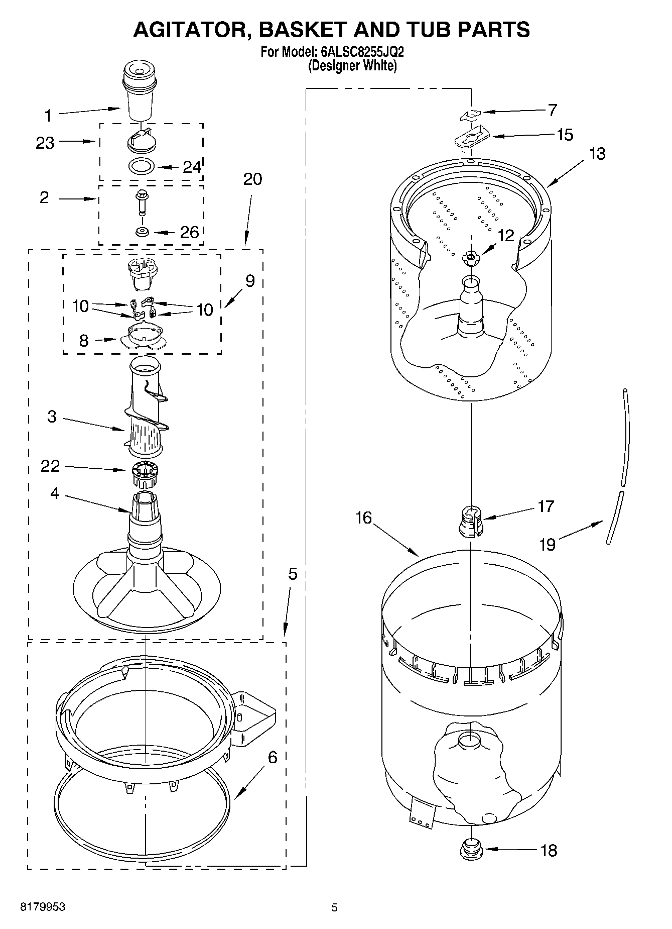 6ALSC8255JQ2 03 – AGITATOR, BASKET AND TUB PARTS