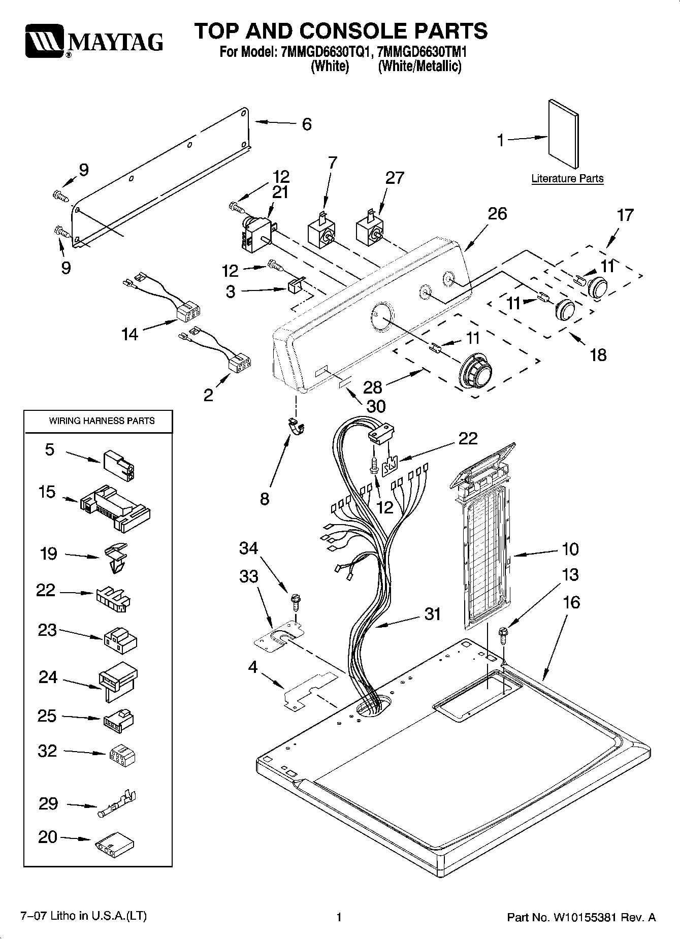 7MMGD6630TM1 01 – TOP AND CONSOLE PARTS