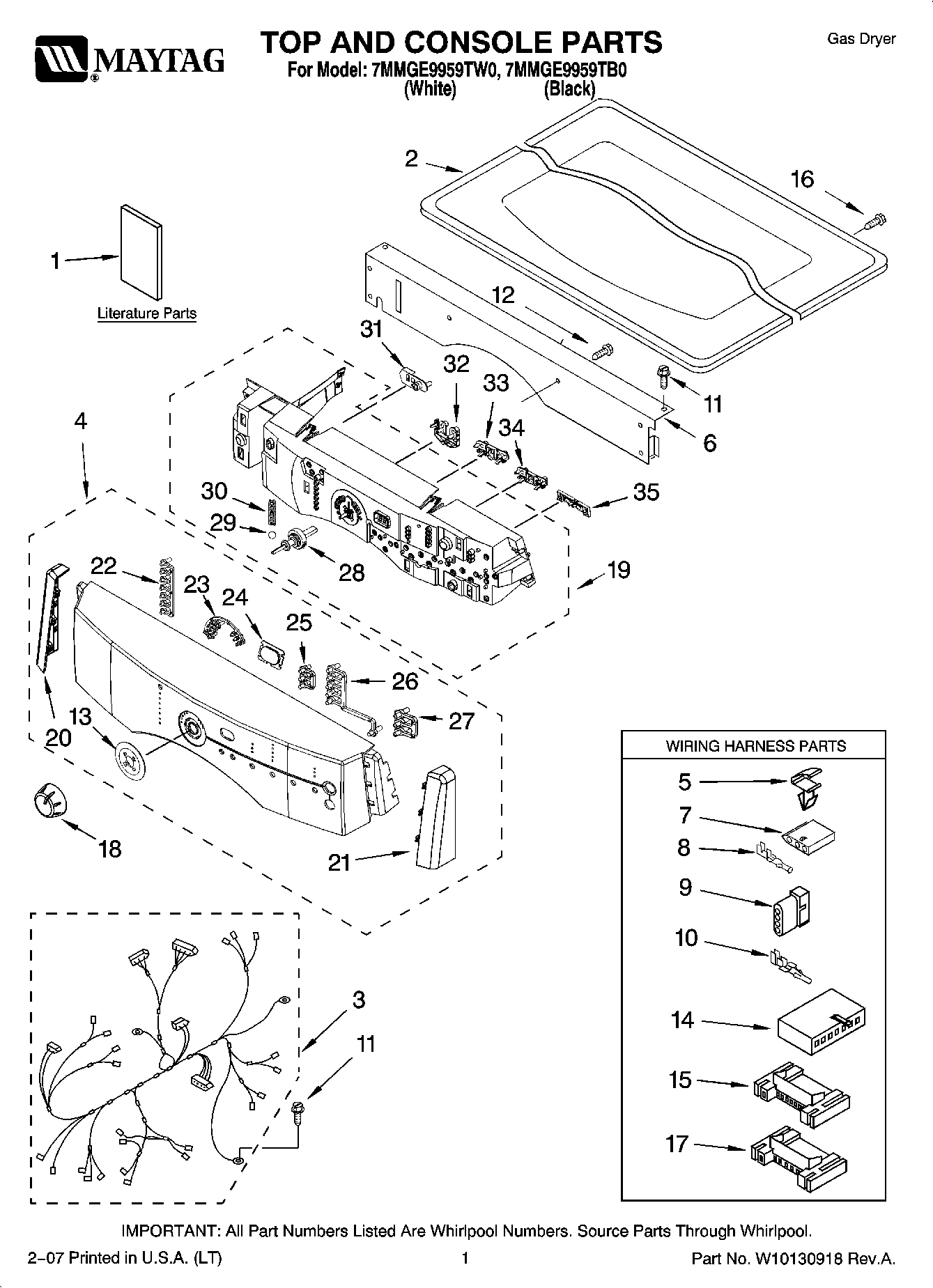 7MMGE9959TW0 01 – TOP AND CONSOLE PARTS