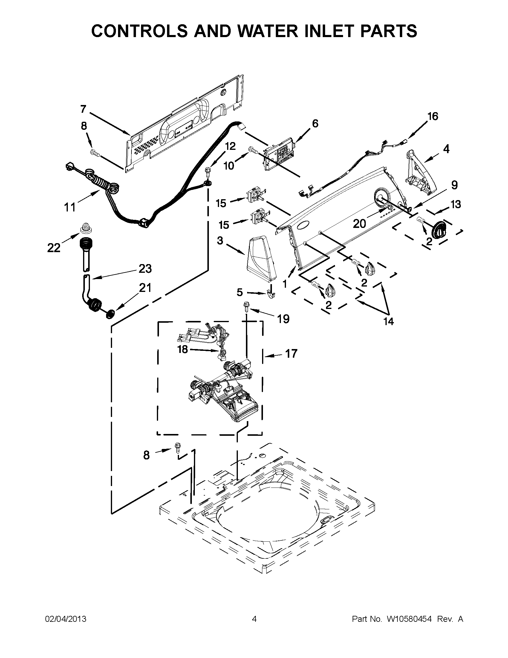 7MWTW1601BQ0 02 – CONTROLS AND WATER INLET PARTS