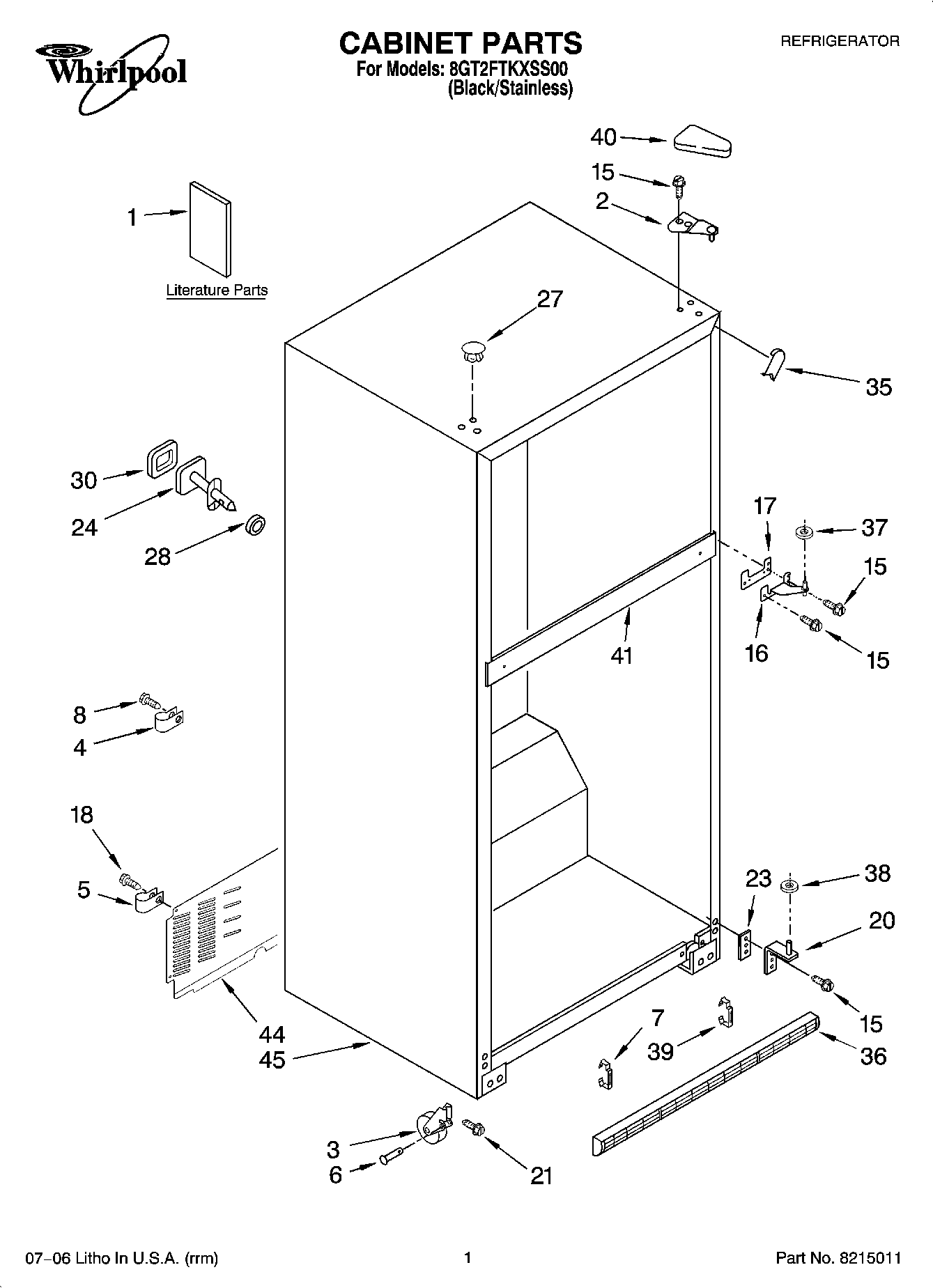 8GT2FTKXSS00 01 – CABINET PARTS