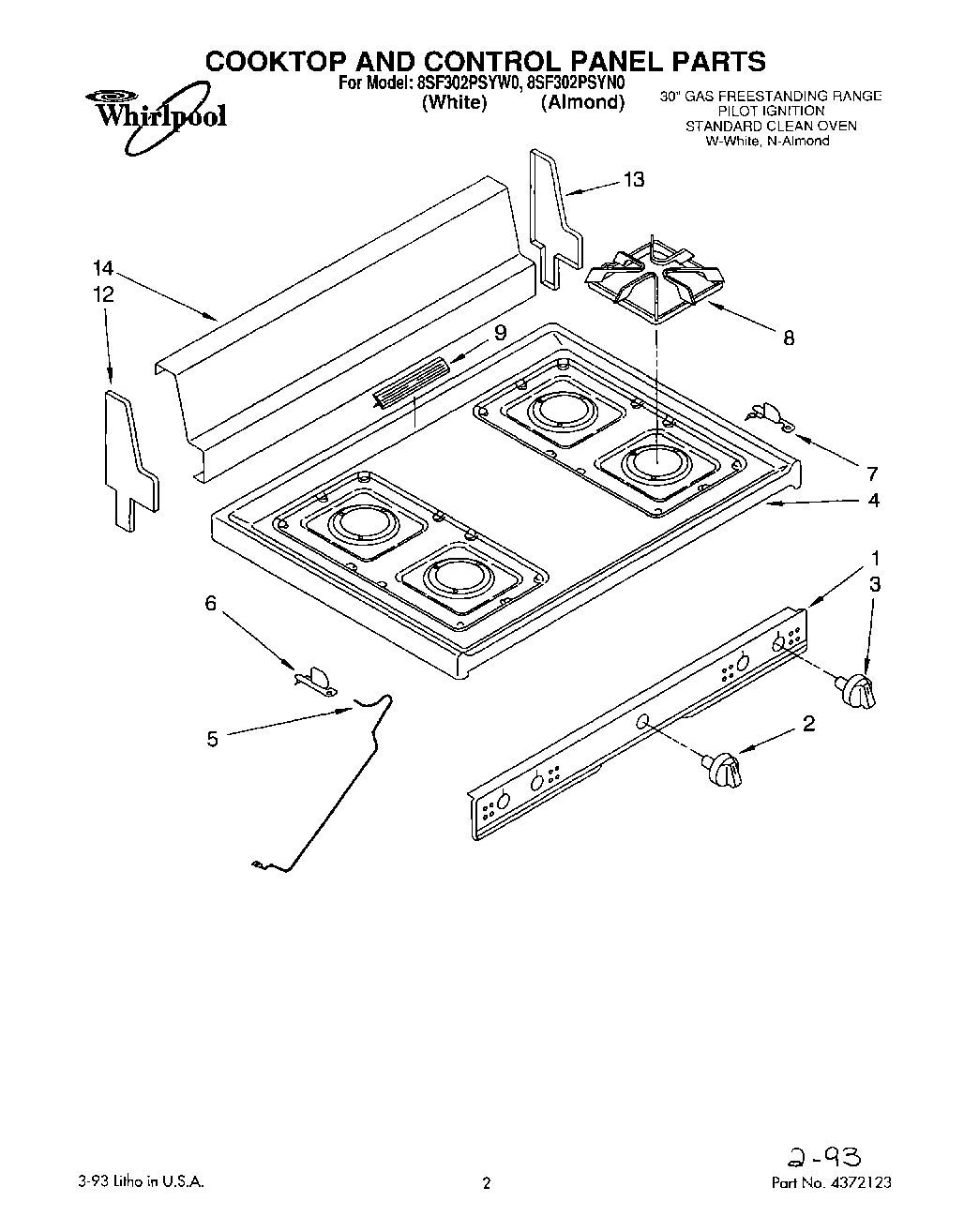 8SF302PSYN0 01 – COOKTOP AND CONTROL PANEL, LIT/OPTIONAL