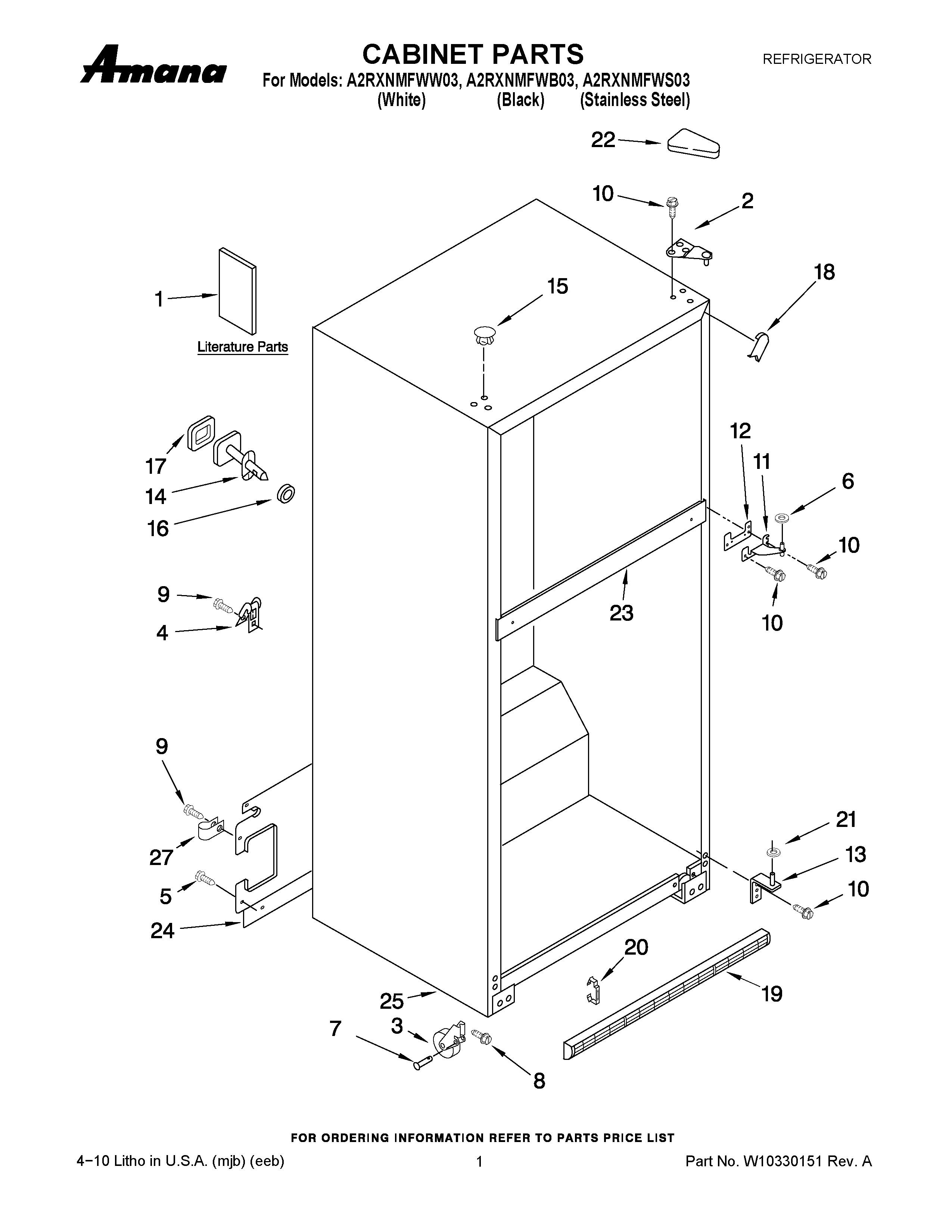 A2RXNMFWS03 01 – CABINET PARTS