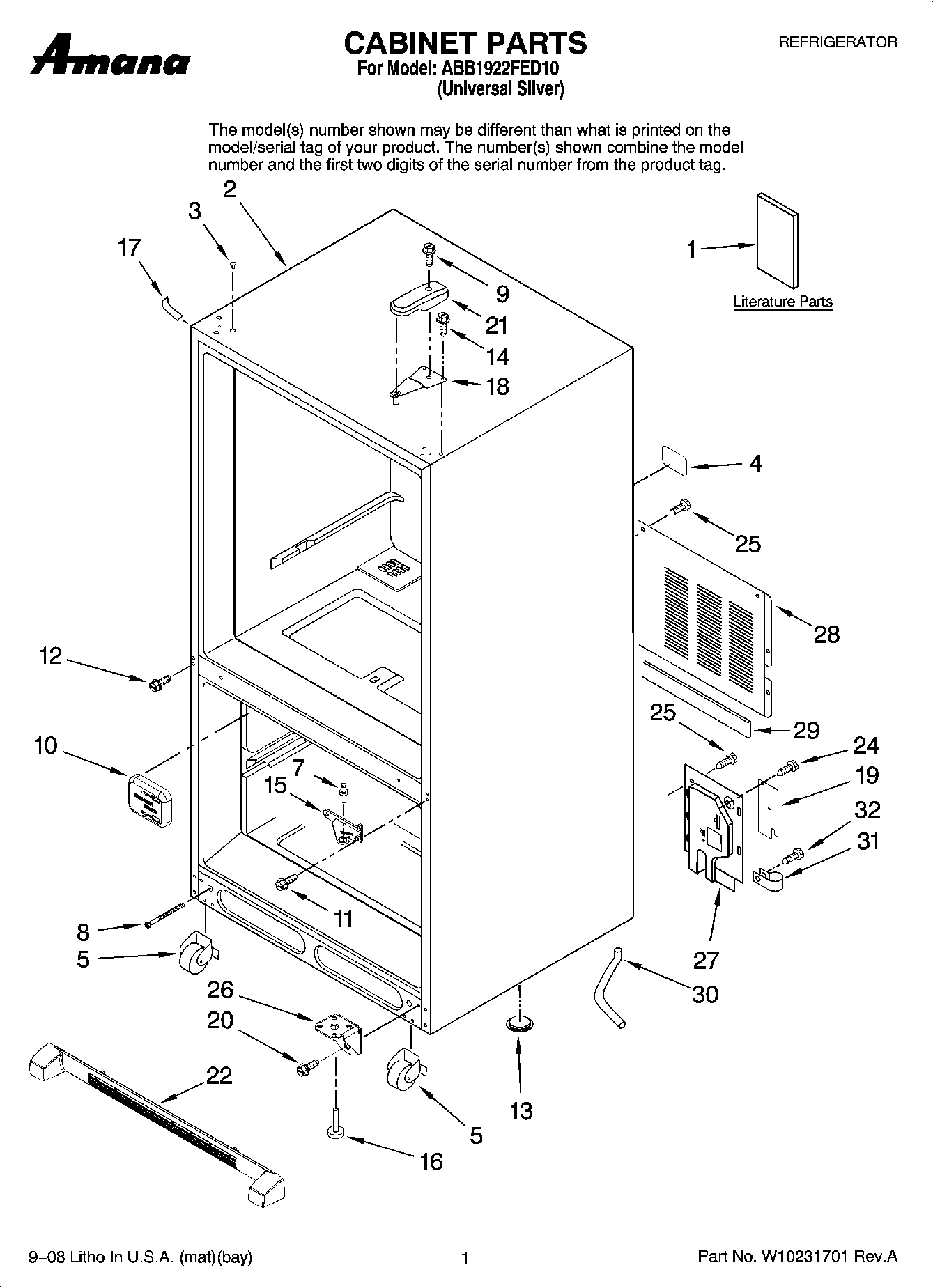 ABB1922FED10 01 – CABINET PARTS