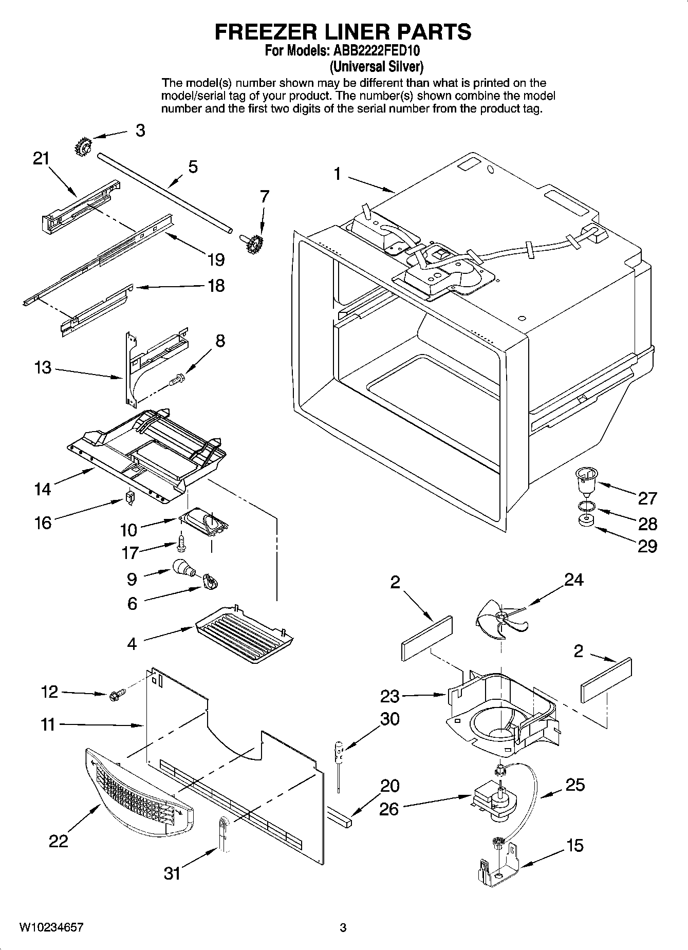 ABB2222FED10 02 – FREEZER LINER PARTS