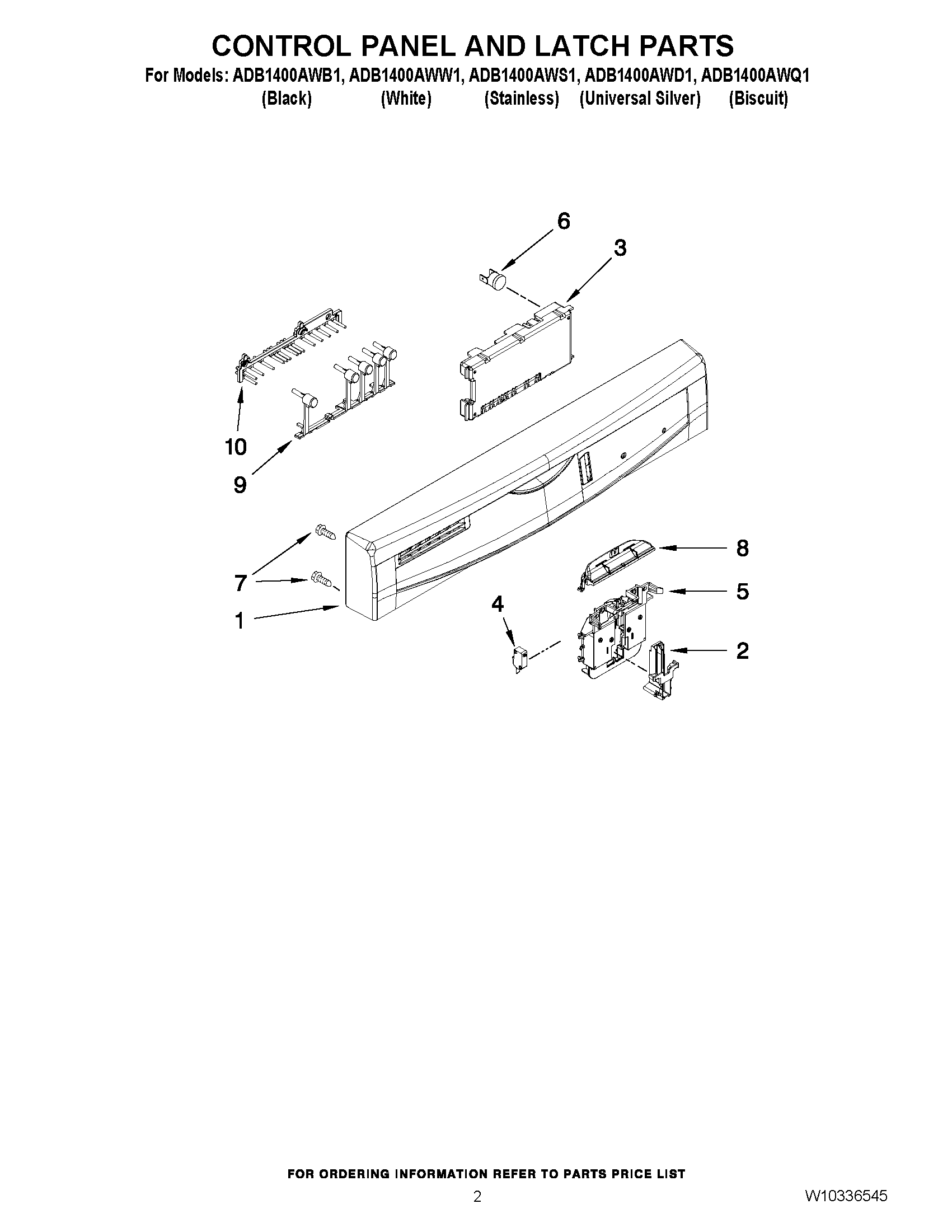 ADB1400AWB1 02 – CONTROL PANEL AND LATCH PARTS