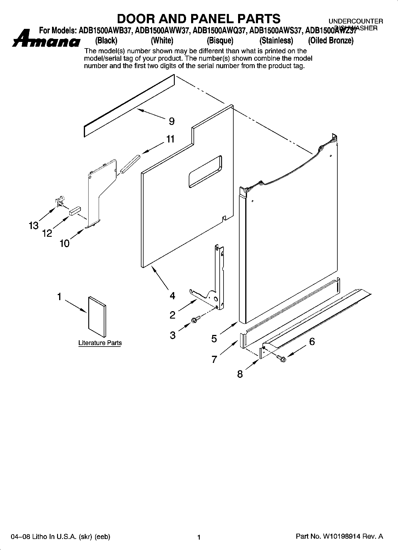 ADB1500AWQ37 01 – DOOR AND PANEL PARTS