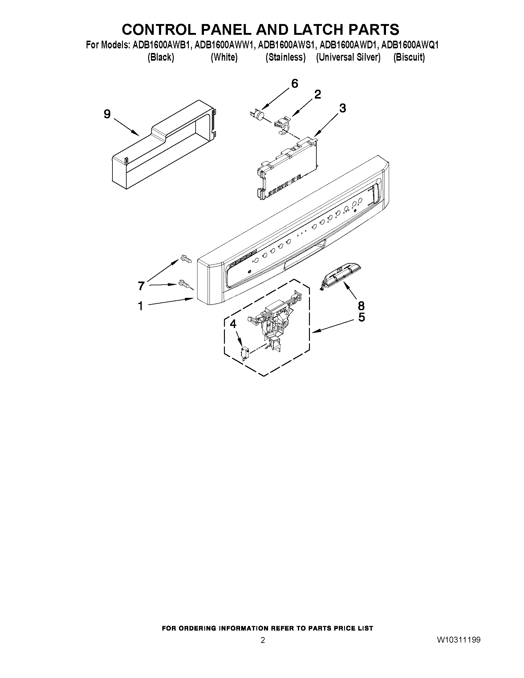 ADB1600AWB1 02 – CONTROL PANEL AND LATCH PARTS