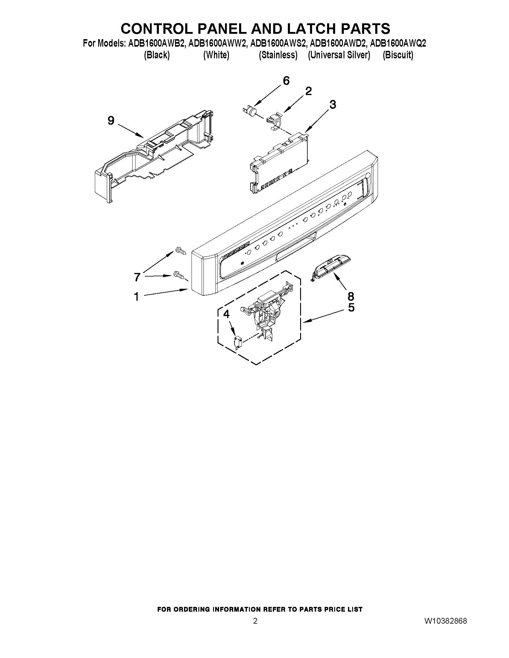 ADB1600AWQ2 02 – CONTROL PANEL AND LATCH PARTS