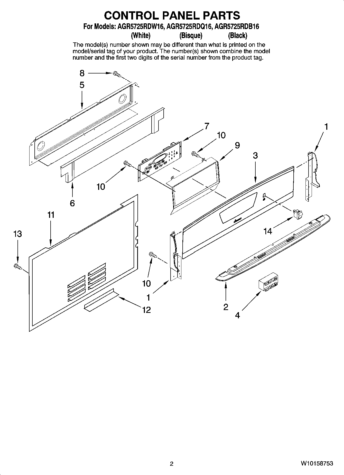 AGR5725RDW16 02 – CONTROL PANEL PARTS