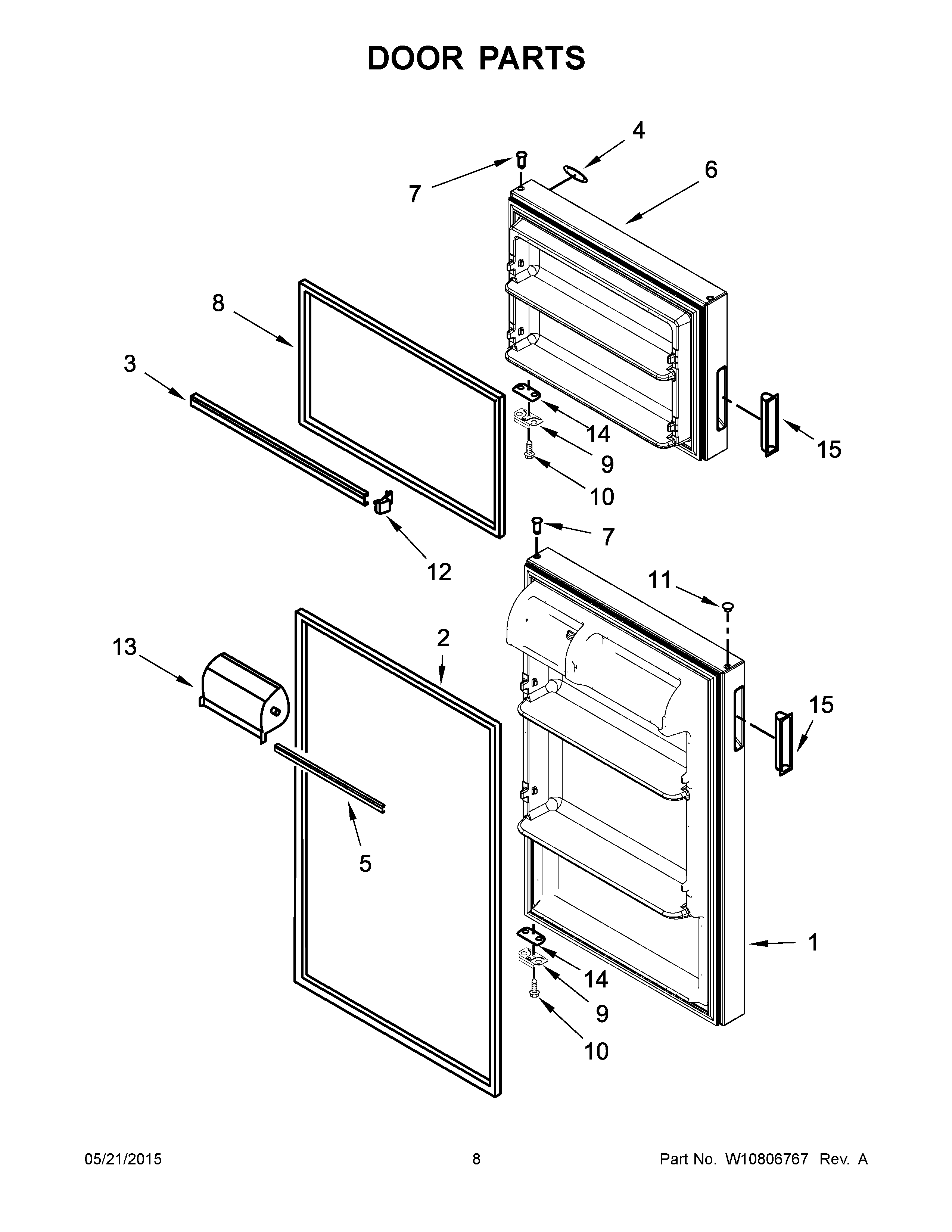 FREEZER DOOR (INCLUDES ILLUSTRATION 8 & DOOR HANDLE) (WHITE)