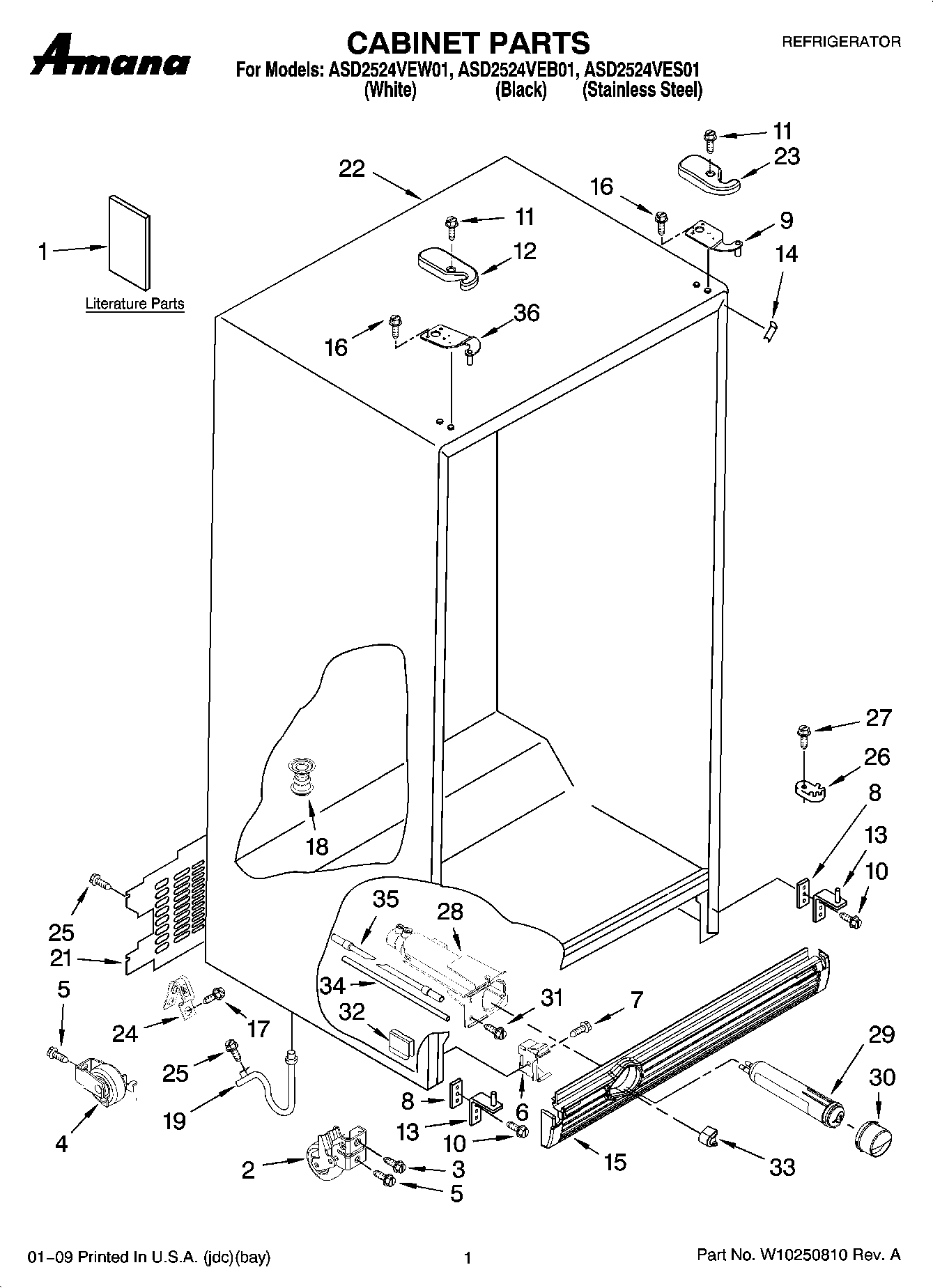 ASD2524VES01 01 – CABINET PARTS