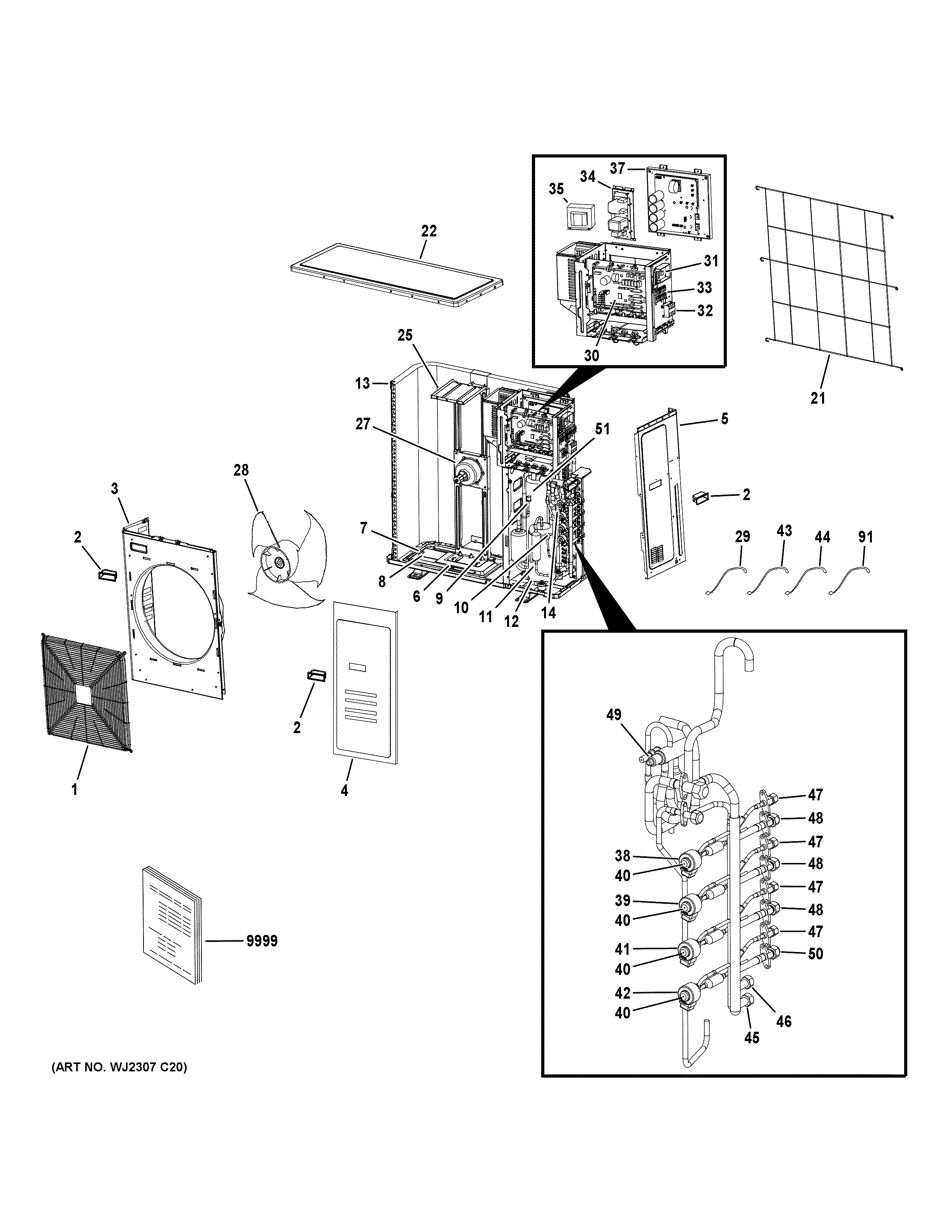 ASH436NCDWA1 ROOM AIR CONDITIONERadmin2025-04-26T08:53:58+00:00ASH436NCDWA1 ROOM AIR CONDITIONER ProductsPositionProduct1FRONT GRILLE2WJ65X25041 GE Handle3WJ71X26196 GE Front Panel4FRONT SERVICE PANEL5RIGHT SIDE PANEL6WJ65X25035 GE Baffle Plate7WJ27X26209 GE Heating Element8WJ65X26198 GE Baffle Late9WJ26X23722 GE Low Pressure Switch10WJ27X22646 GE High Pressure Switch11WJ98X26204 GE Compressor12WJ27X22668 GE Sump Heater13WJ88X31176 GE Condenser Assembly14WJ53X23724 GE Outdoor EEV Coil Assembly21WJ71X26197 GE Rear Grille22WJ71X26207 GE Top Cover25WJ65X23569 GE Fan Motor Bracket27FAN MOTOR28WJ73X22642 GE Fan Blade29WJ26X28815 GE Liquid Pipe Sensor30WJ26X25053 GE Outdoor Power Control Board31WJ26X25054 GE Service Power Control Board32TERMINAL BLOCK (INDOOR)33WJ26X25073 GE Terminal Block Supply34WJ26X26200 GE Power Control Board Filter35WJ26X22659 GE Reactor37WJ26X26201 GE Inverter Driver Module38WJ26X25034 GE Leveling Coil39WJ26X24364 GE Evaporator Coil40WJ26X22674 GE Expansion Valve Body41LEV COIL C (BLLUE)42WJ26X26195 GE Coil D (White)43WJ26X28816 GE Refrigerator Defrost/Suction/Discharge Temperature44WJ26X28814 GE Gas Pipe Sensor45WJ53X25049 GE Liquid Stop Valve46WJ53X25050 GE Gas Stop Valve47WJ53X25046 GE Liquid Pipe 1/4"48WJ53X25047 GE Gas Pipe 3/8 Inch49WJ53X23567 GE 4-Way Valve50WJ53X26205 GE Gas Pipe 1/2 Inch51ACCUMULATOR91WJ26X26203 GE Defrost/Thermostat Sensor9999PM INSTALL INSTRUCTIONS