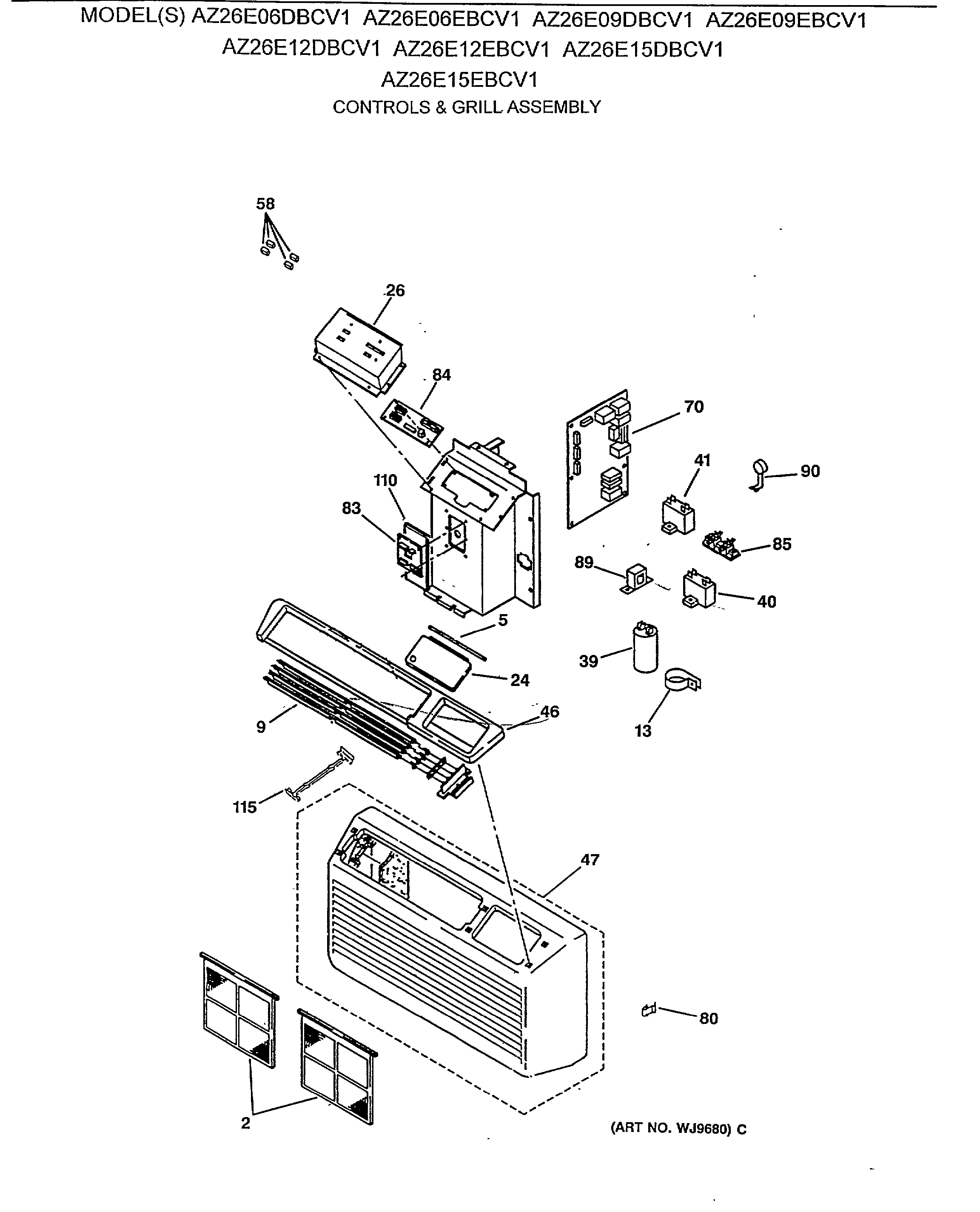 AZ26E09EBCV1 CONTROLS & GRILL ASSEMBLY