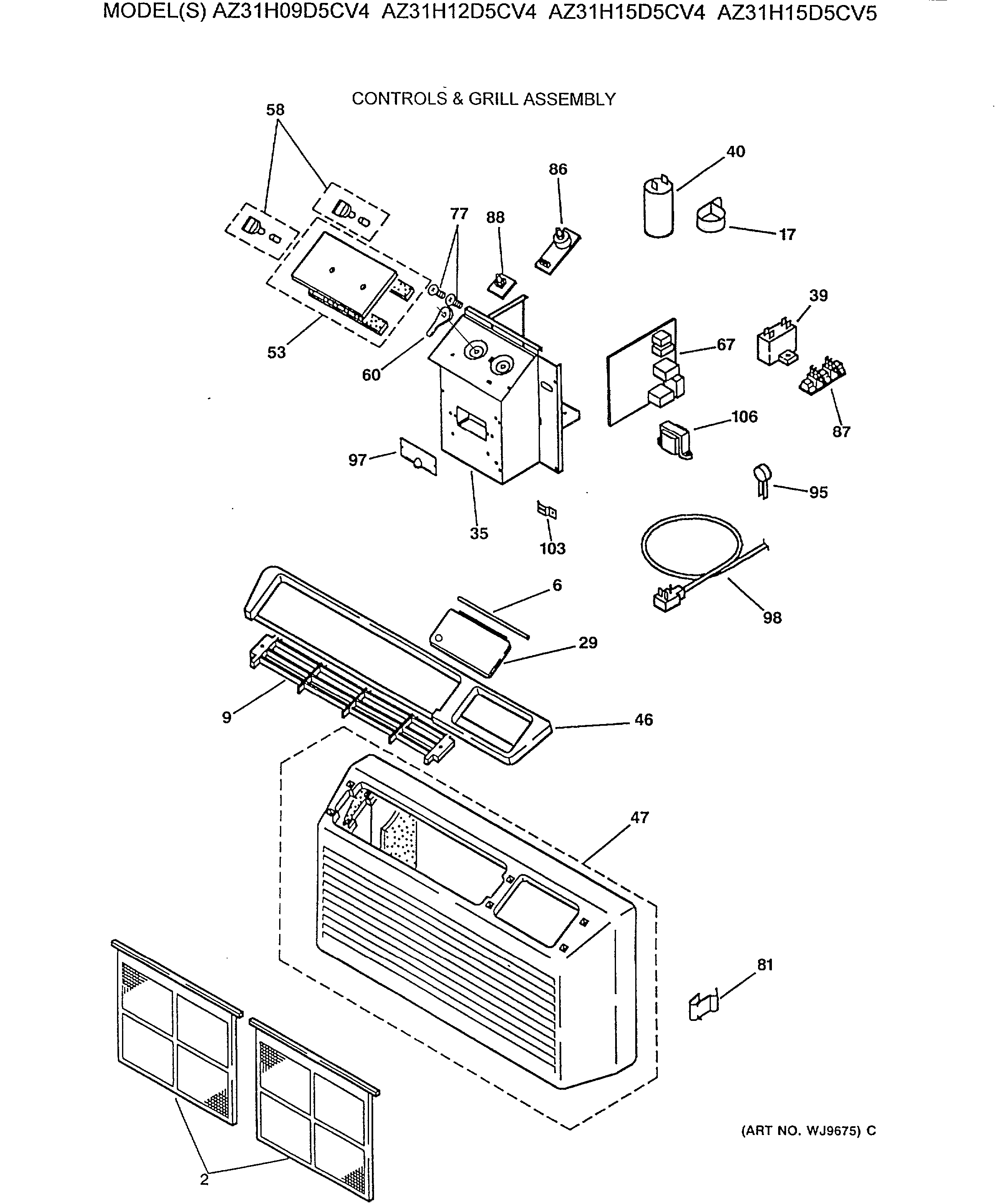 AZ31H15D5CV5 CONTROLS & GRILL ASSEMBLY