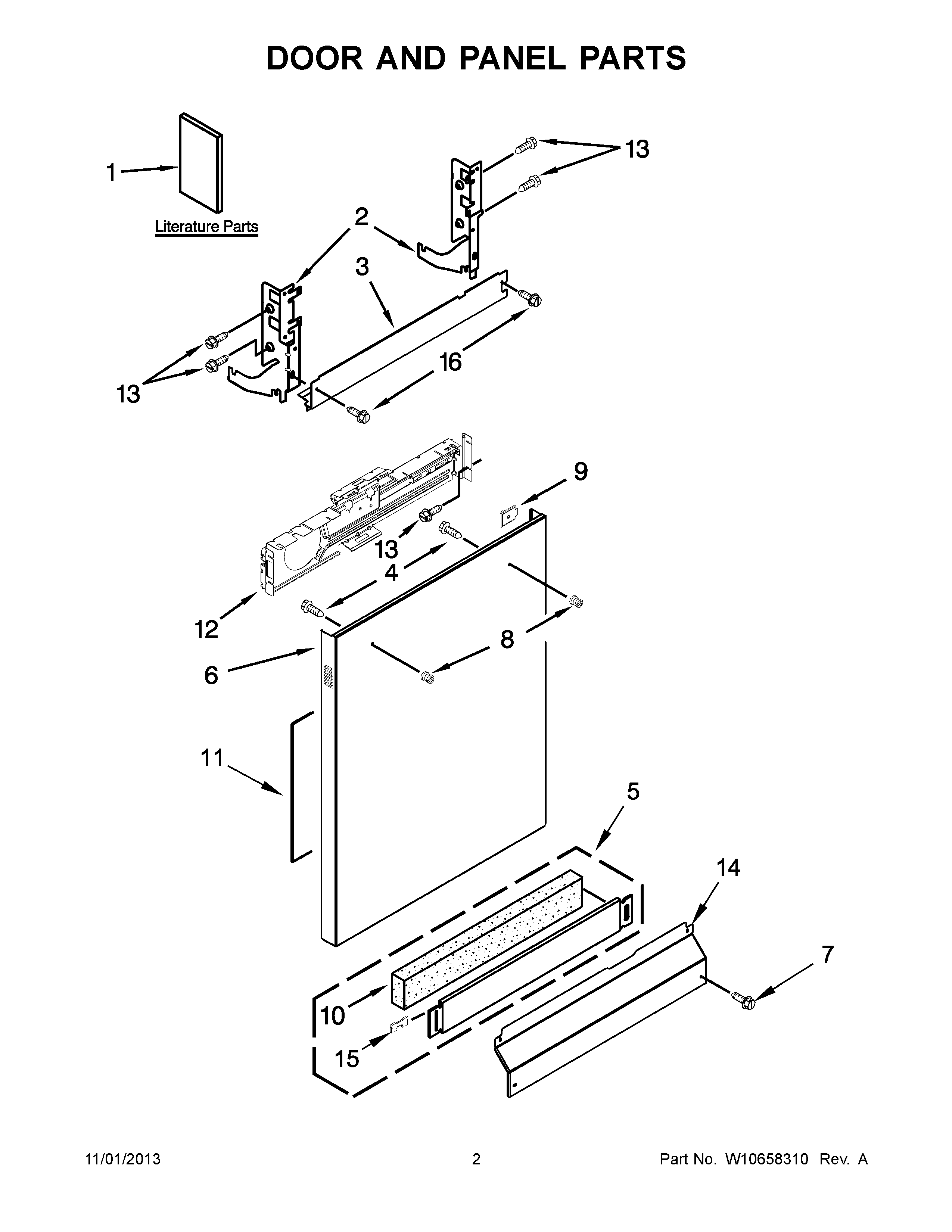 W10850371 Whirlpool Dishwasher Door Brace
