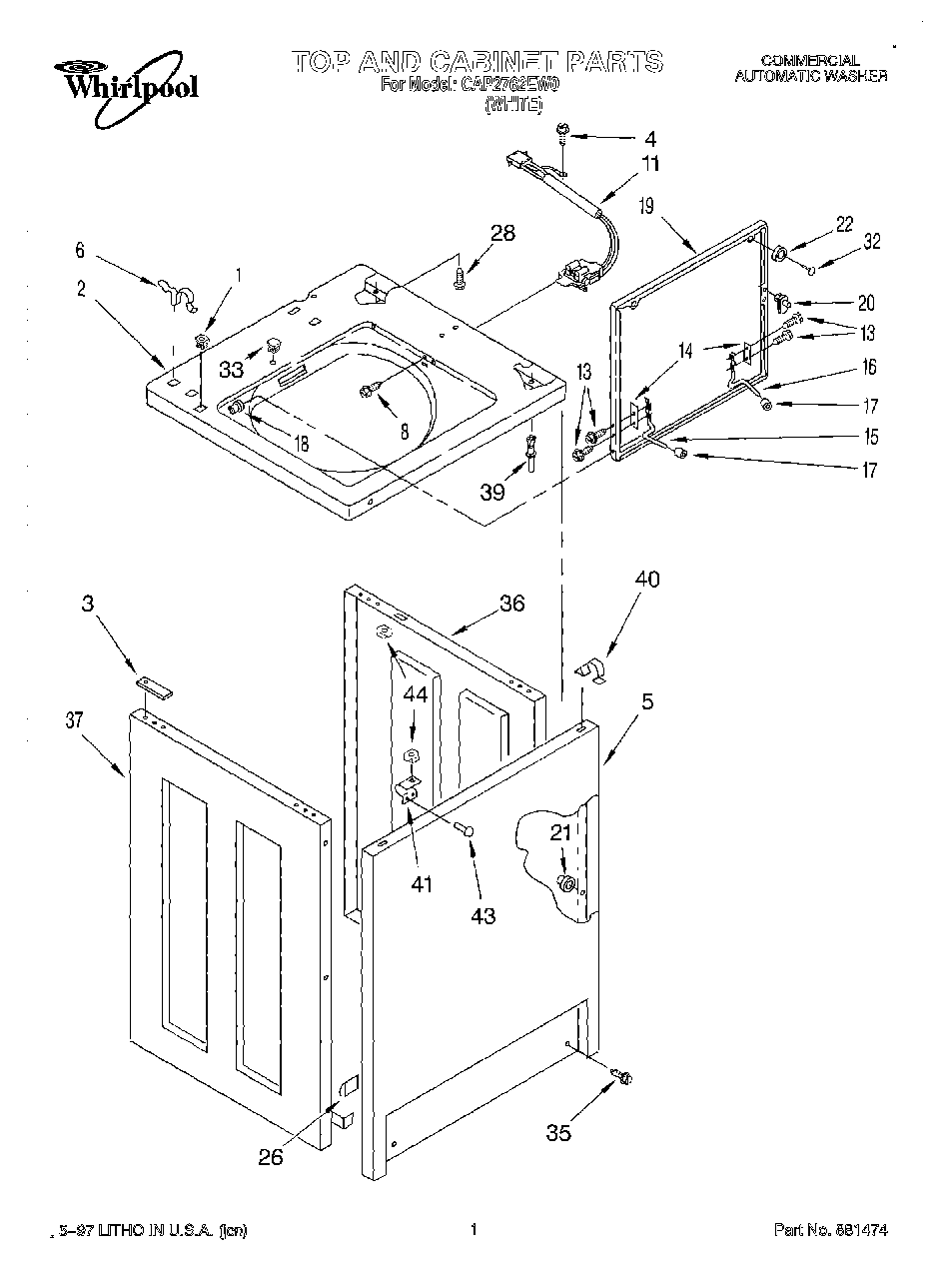CAP2762EW0 01 – TOP AND CABINET, LIT/OPTIONAL