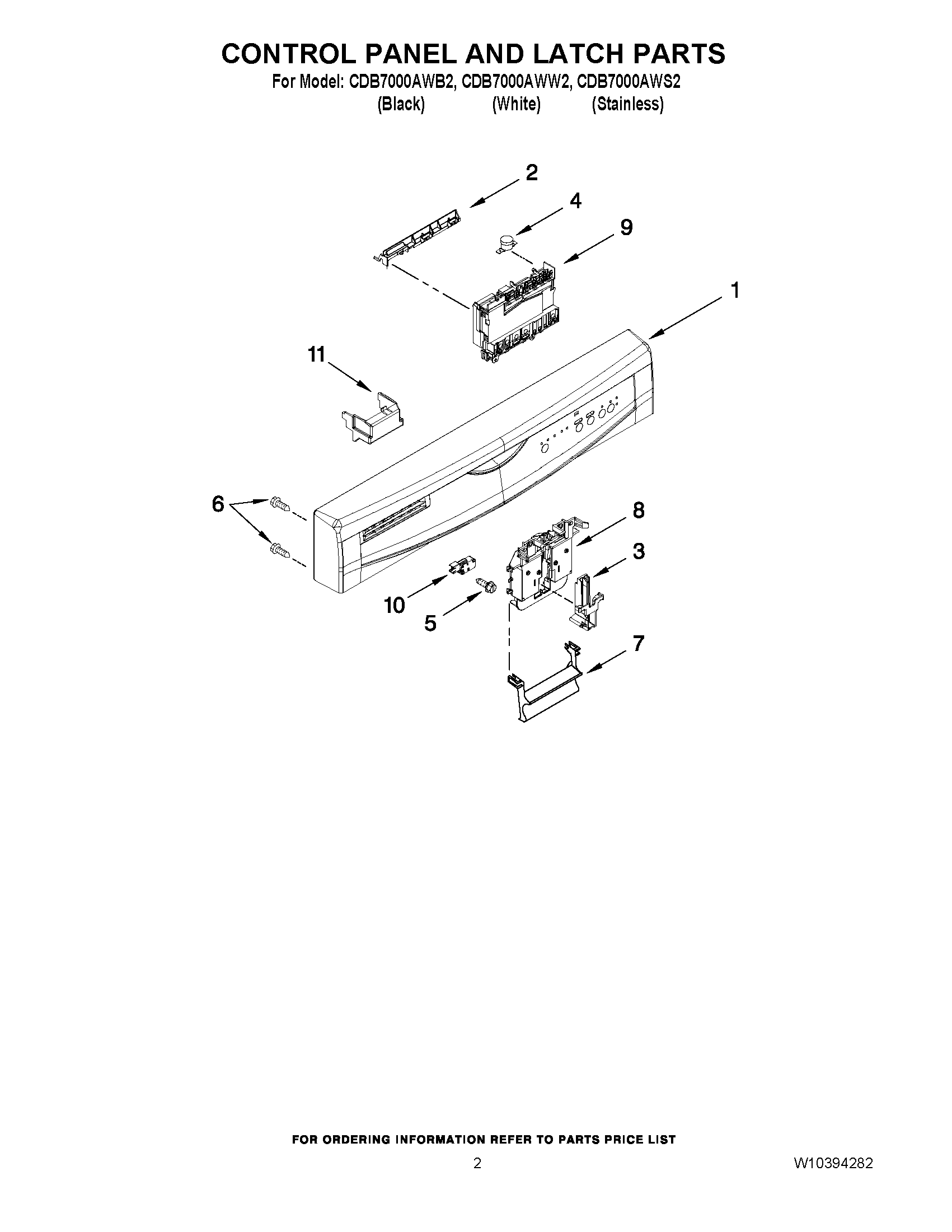 CDB7000AWB2 02 – CONTROL PANEL AND LATCH PARTS
