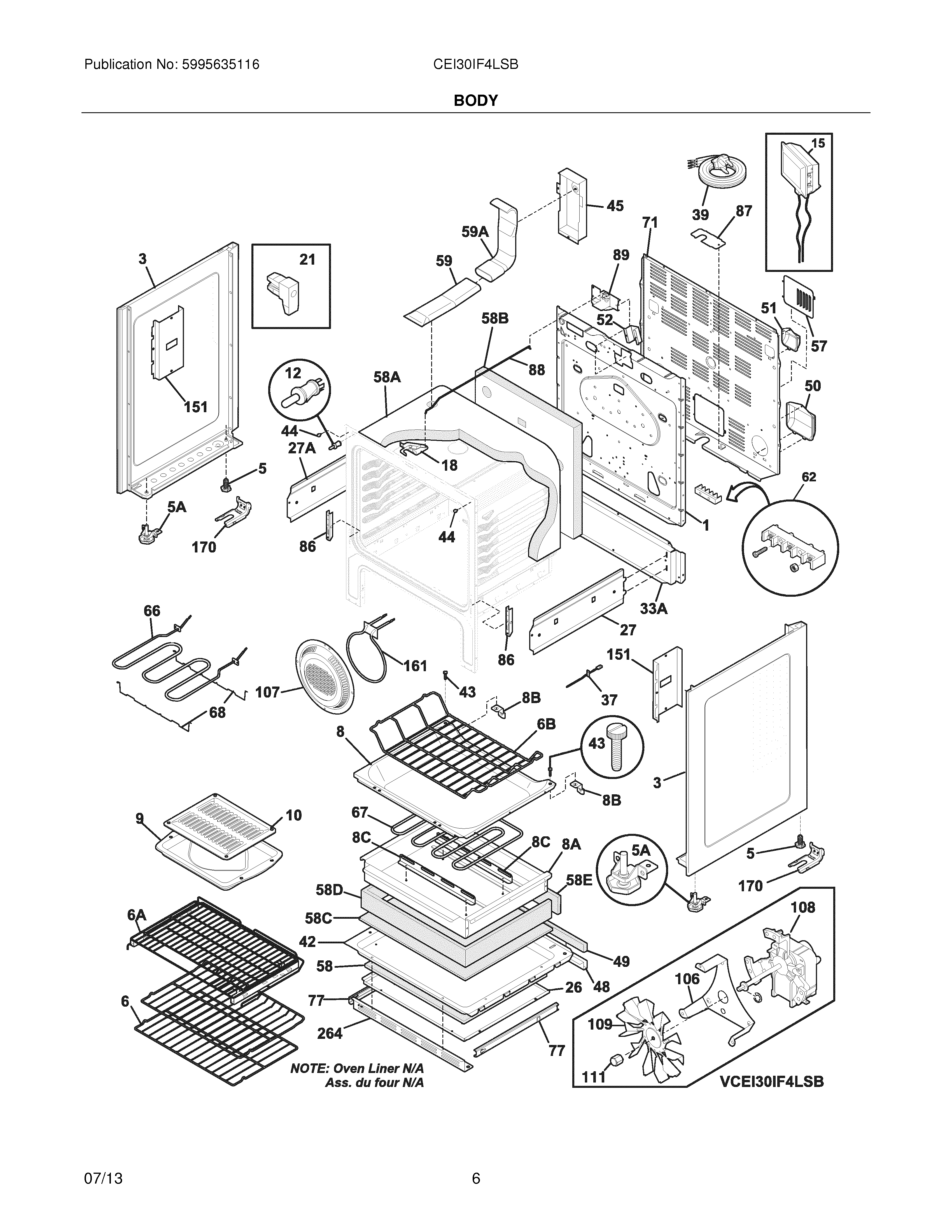 316082001 Frigidaire Oven Insert