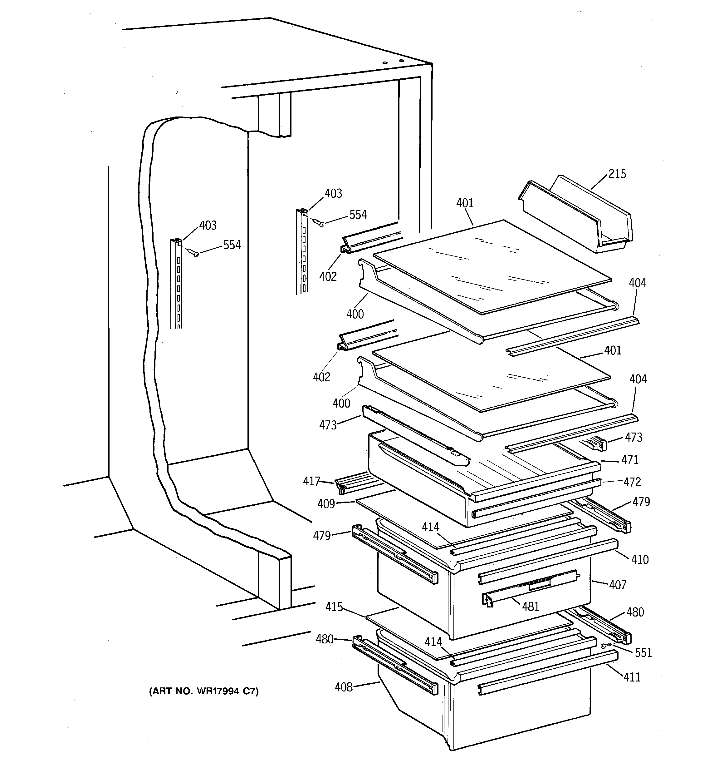 WR72X254 GE Refrigerator Side Track Assembly
