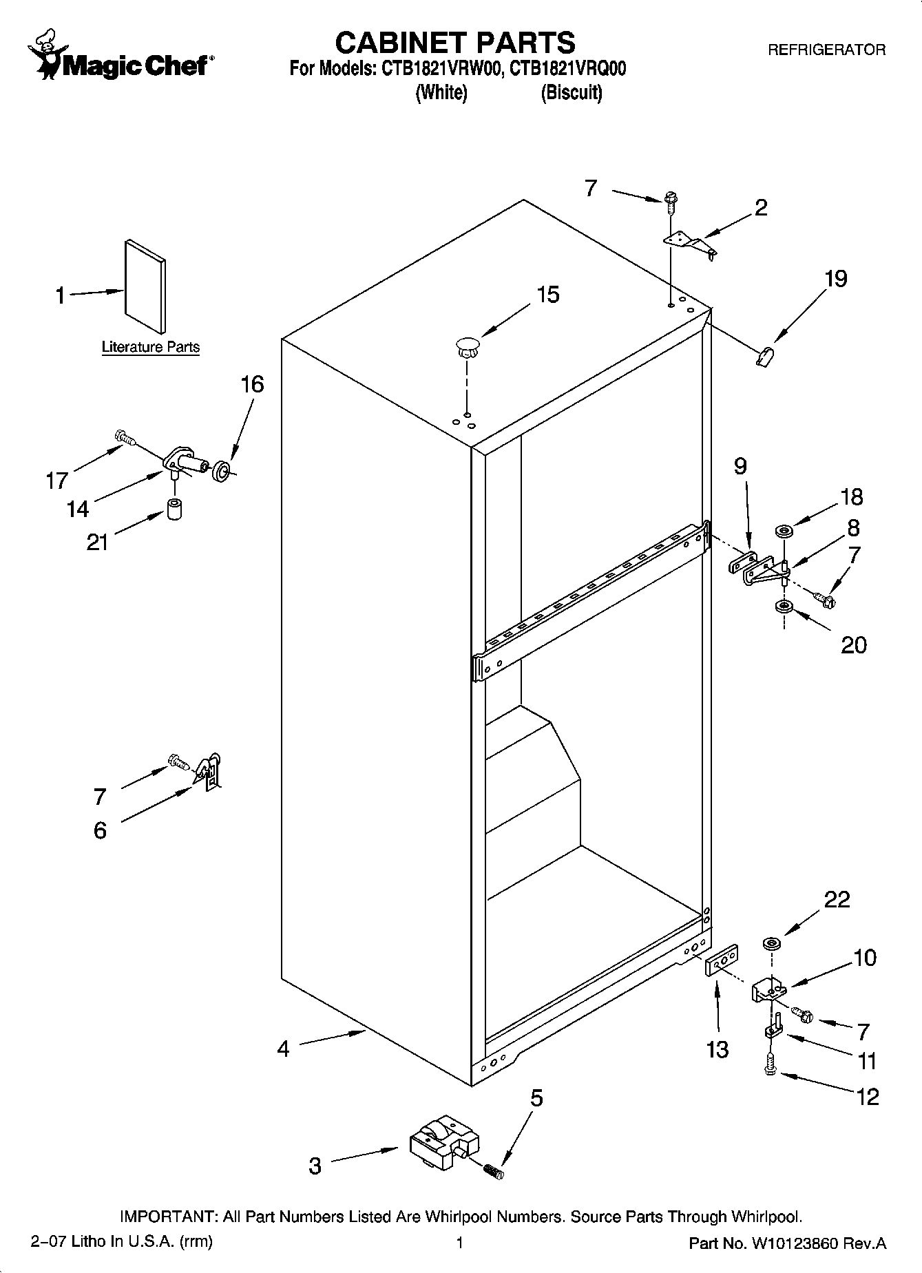 CTB1821VRW00 01 – CABINET PARTS