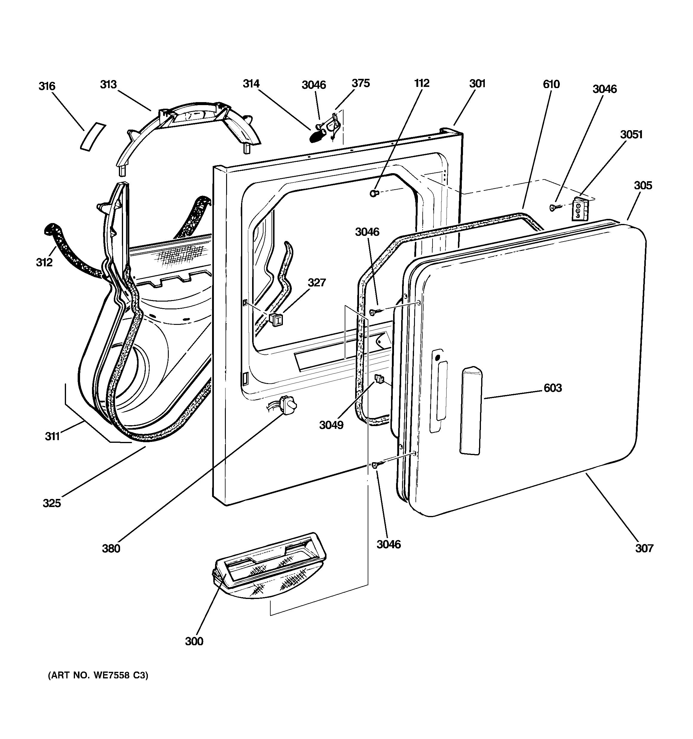 WE14X25080 GE Dryer Lint Filter Trap Assembly