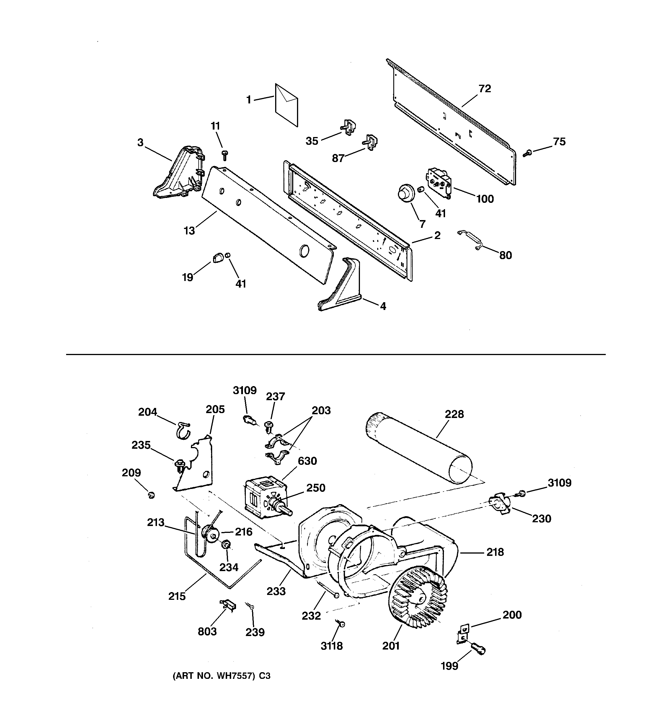DCXR453EV0WW BACKSPLASH, BLOWER & DRIVE ASSEMBLY