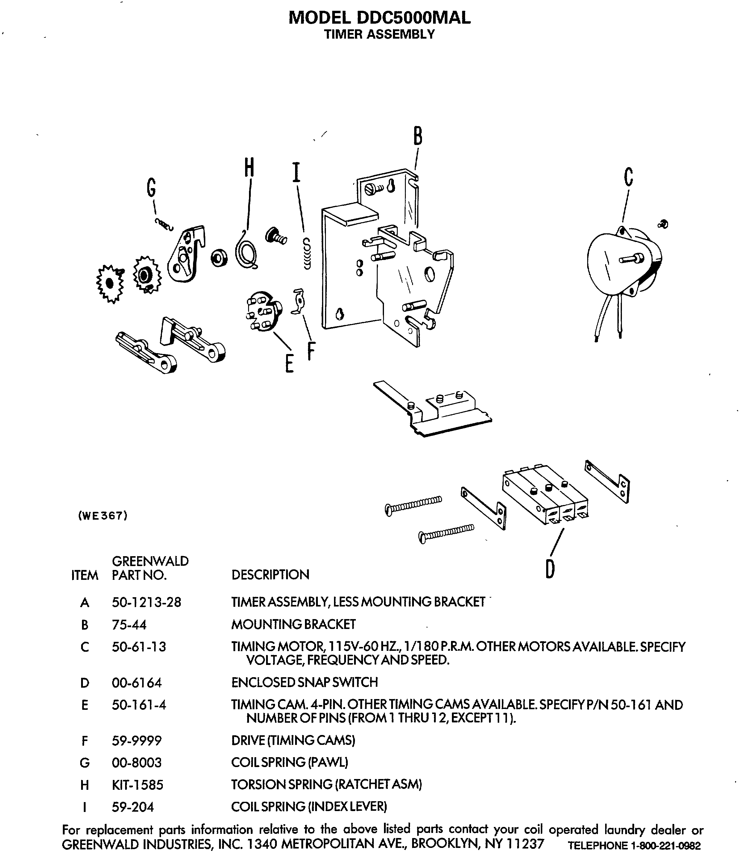 | 32767 | TIMING MOTOR, 115V-60 HZ., 1/180 P.R.M. OTHER MOTORS AVAILABLE, SPECIFY VOLTAGE, FREQUENCY AND SPEED. |
