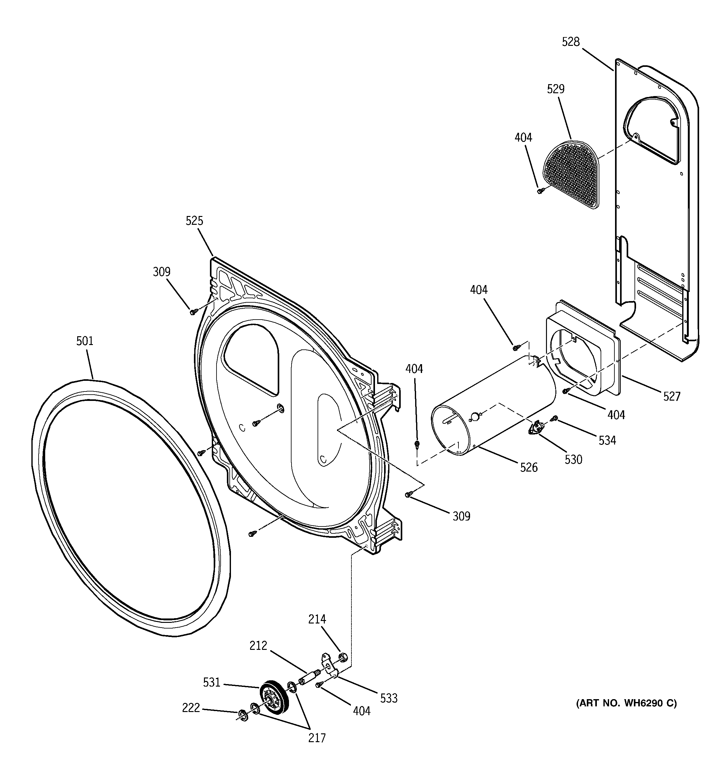 DDSS475GA0WW REAR BULKHEAD, ROLLERS & AIR DUCT ASSY.