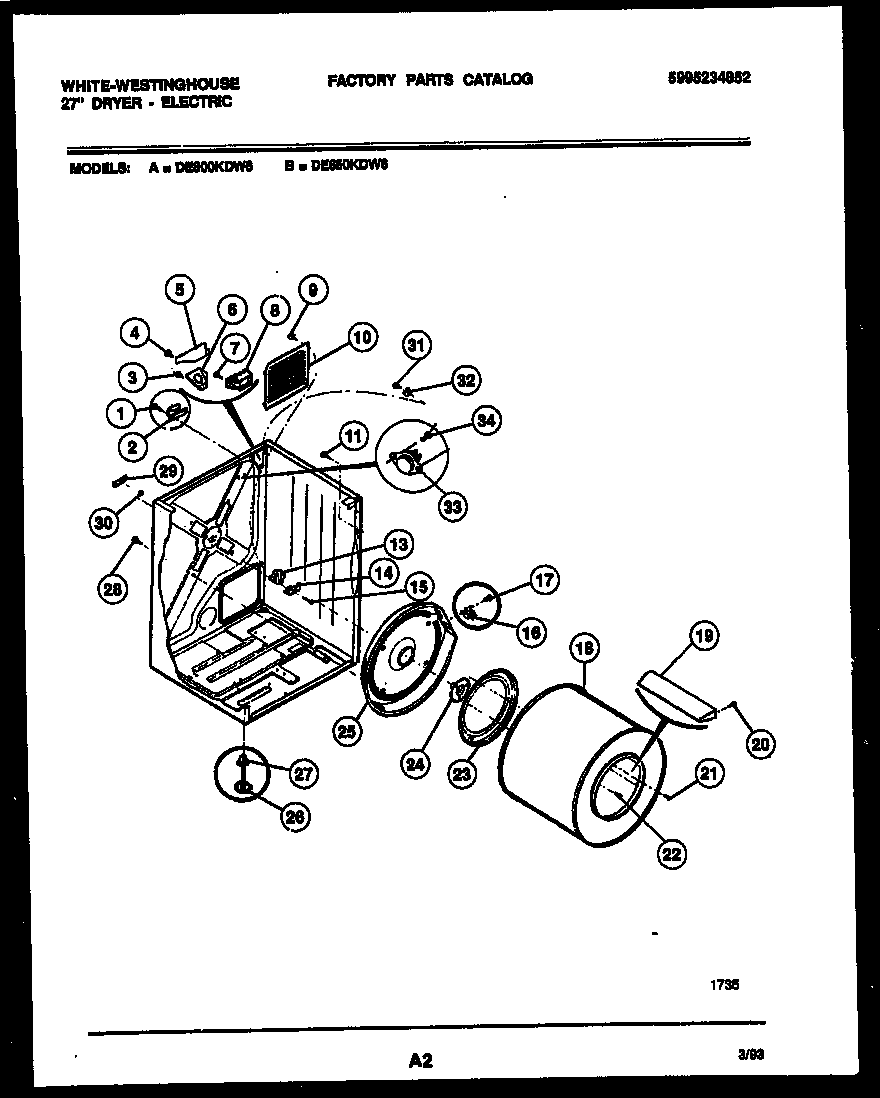 DE650KDD6 02 – CABINET AND COMPONENT PARTS
