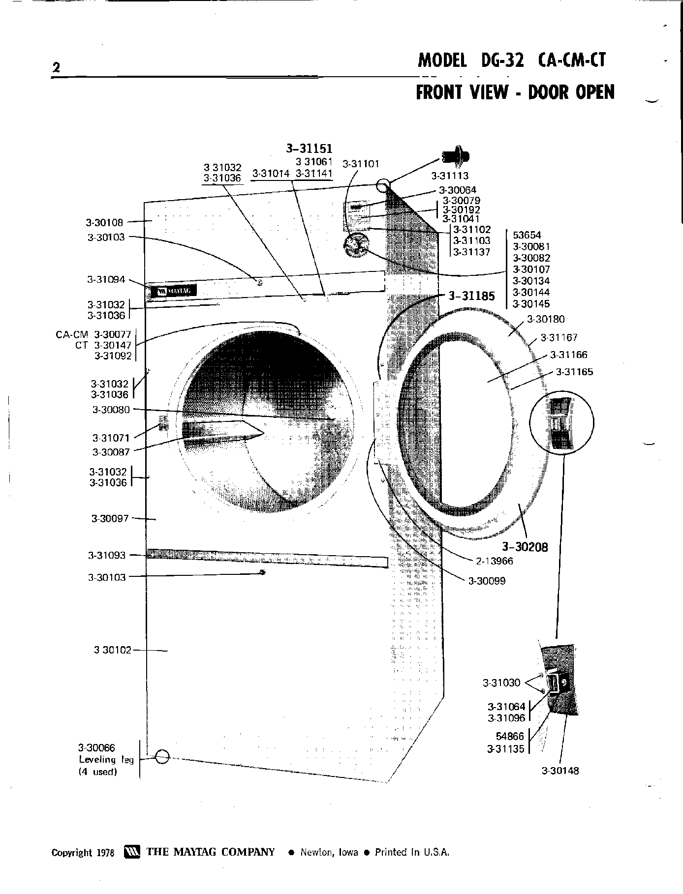 | 030 | WASHER-FRONT PANEL SCREWS |