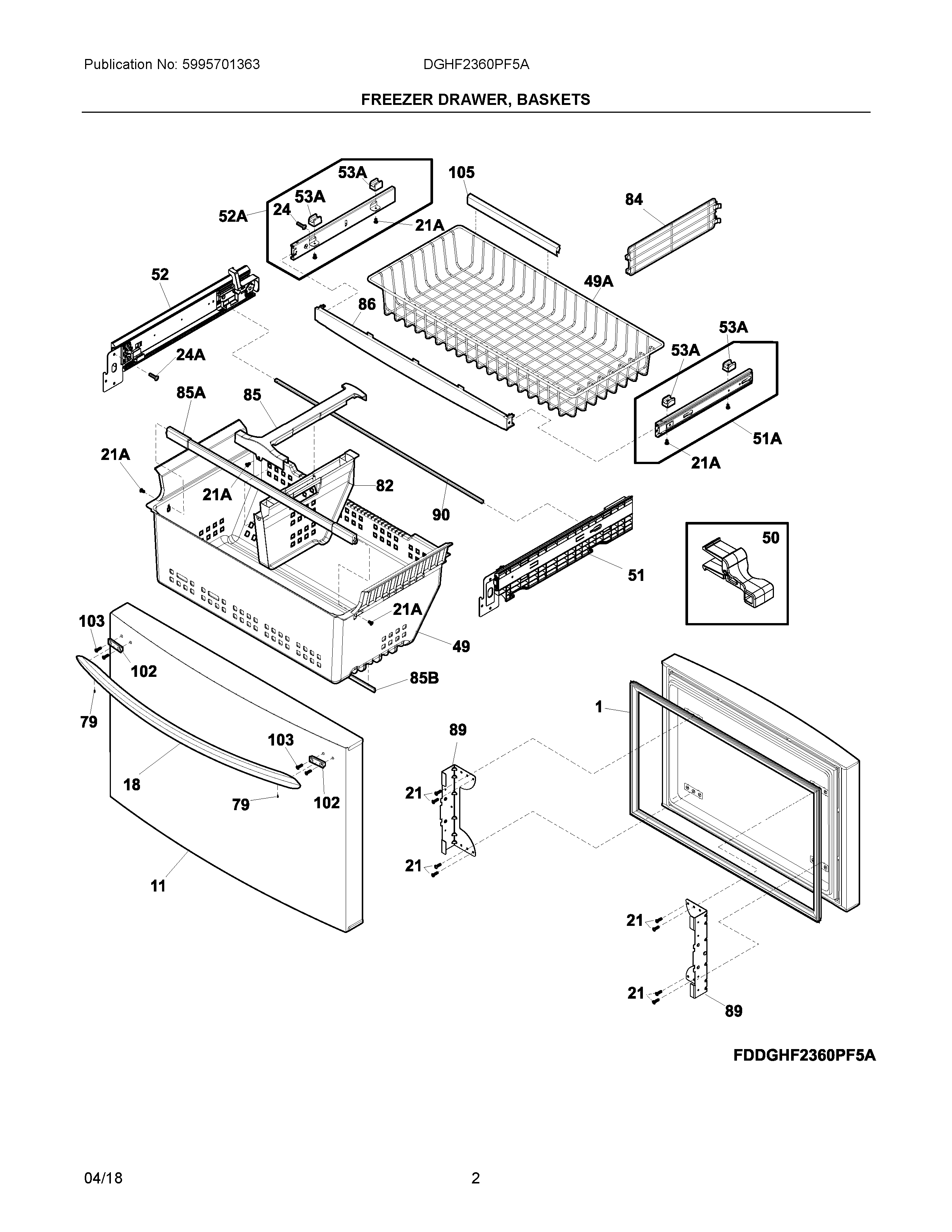 DGHF2360PF5A 02 – FREEZER DRAWER, BASKETS