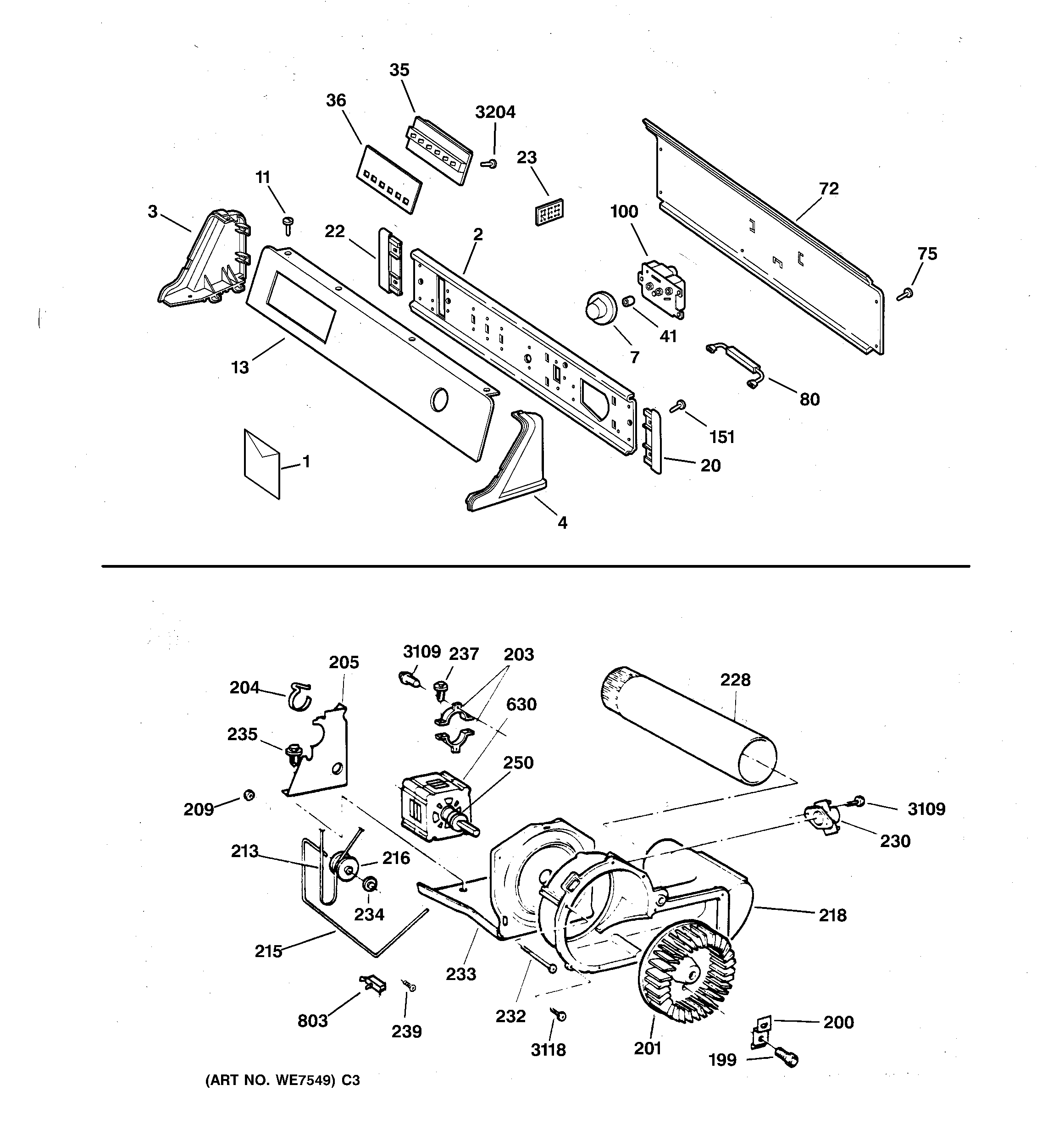 DPSQ475ET4AA BACKSPLASH, BLOWER & DRIVE ASSEMBLY