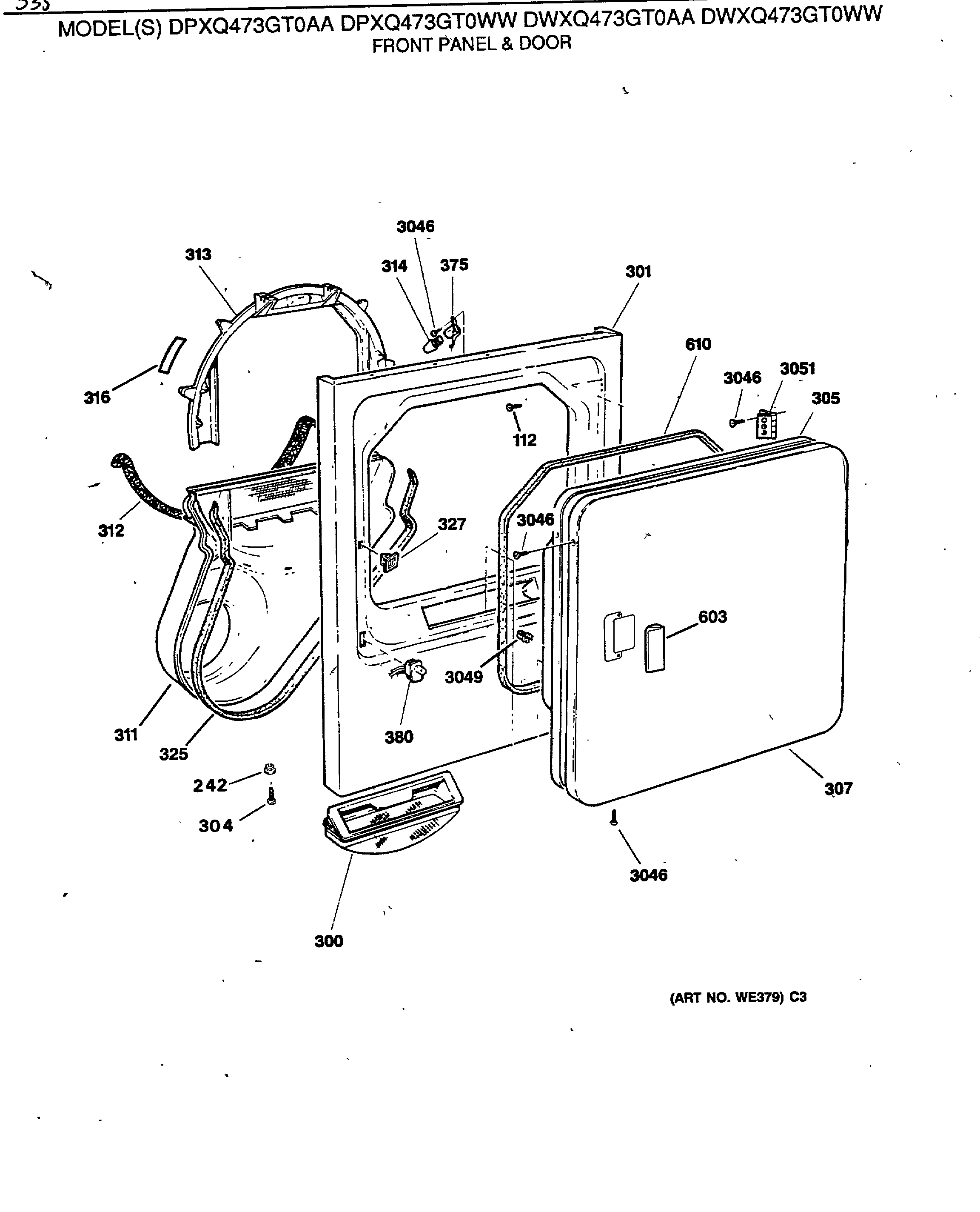 DPSQ495GT0WW FRONT PANEL & DOOR