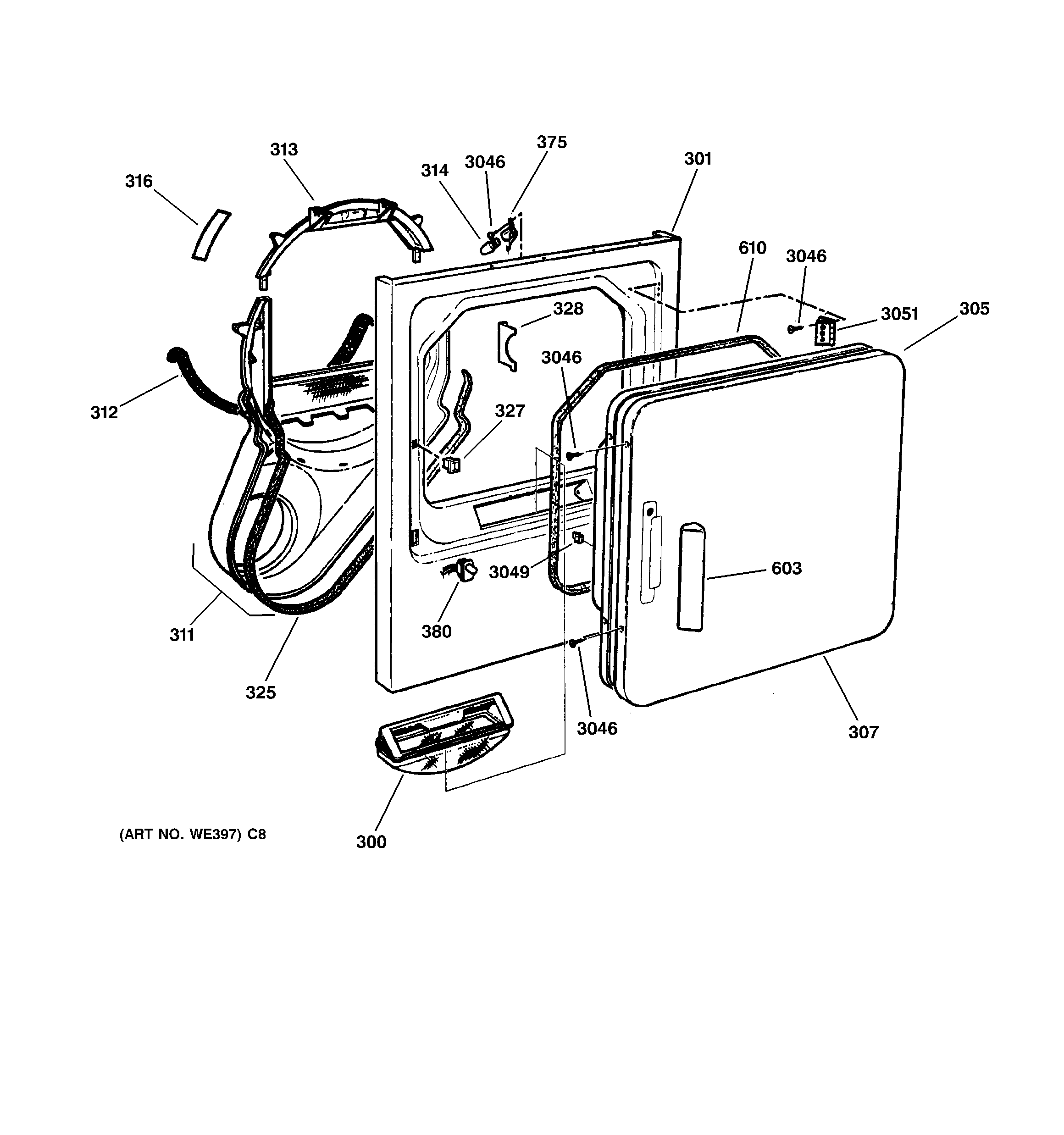 DPXR483EA1WW FRONT PANEL & DOOR