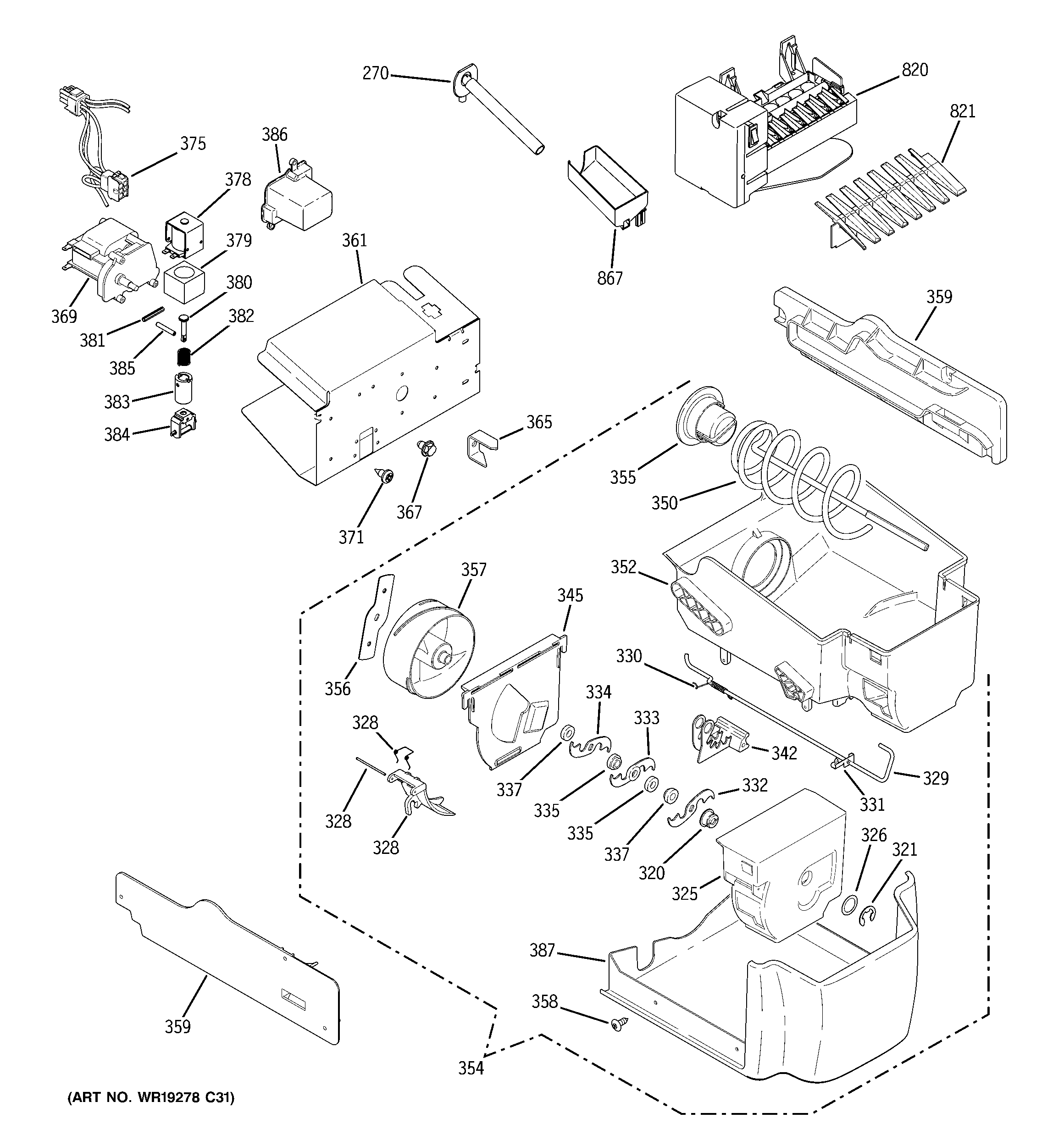 WR17X11447 GE Ice Bucket Auger Assembly