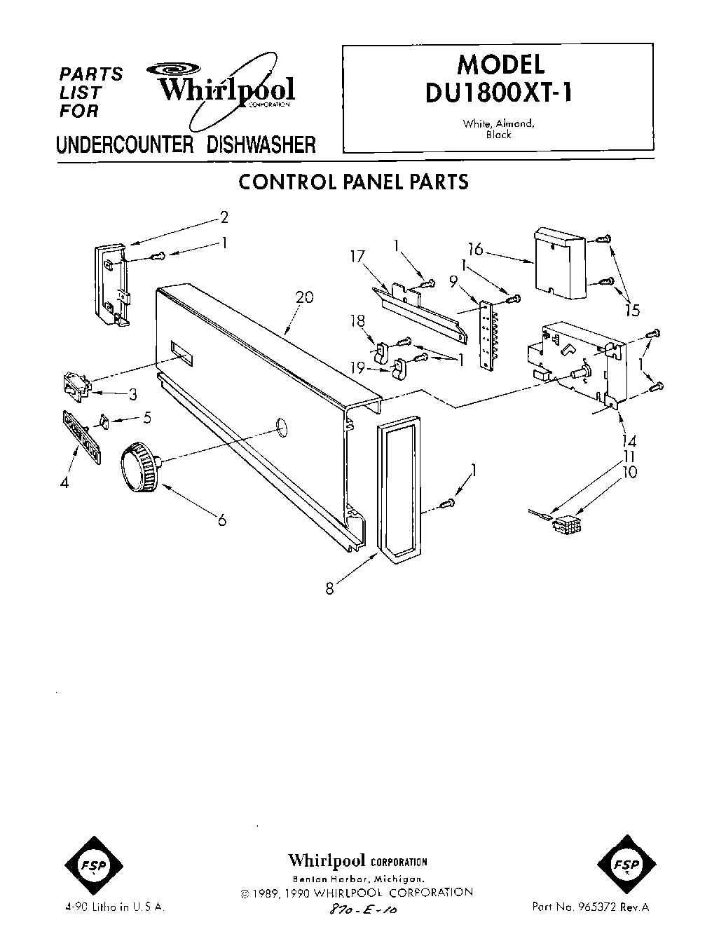 DU1800XT1 01 – CONTROL PANEL