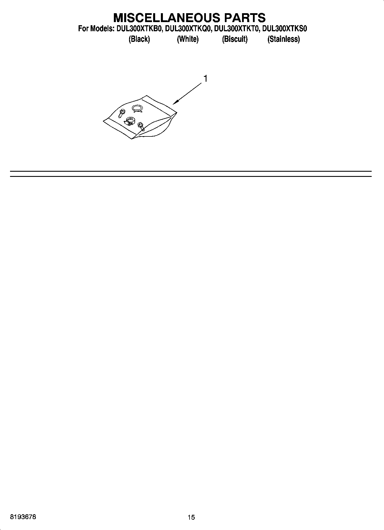 DUL300XTKQ0 12 – MISCELLANEOUS PARTS OPTIONAL PARTS (NOT INCLUDED)