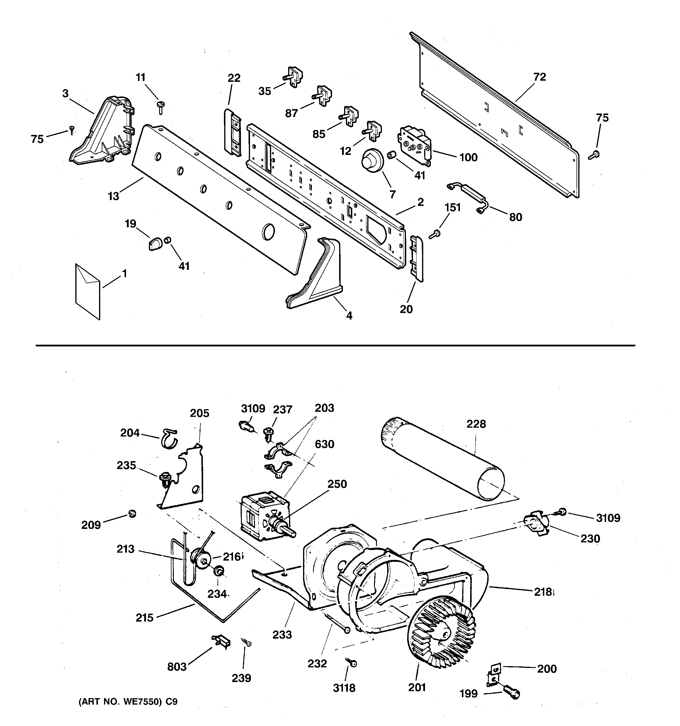 DWXR473ET3WW BACKSPLASH, BLOWER & DRIVE ASSEMBLY
